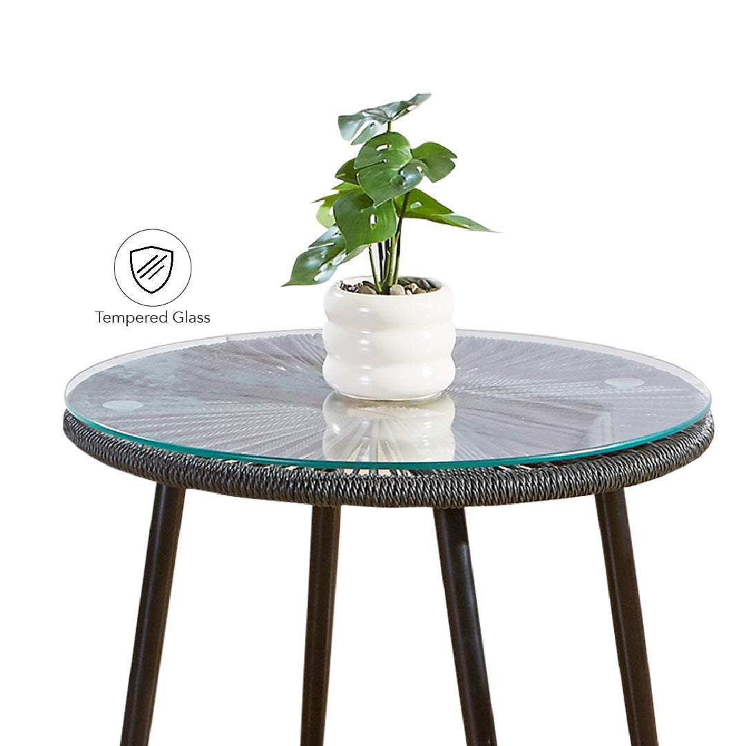 - PE Rattan with Tempered Glass