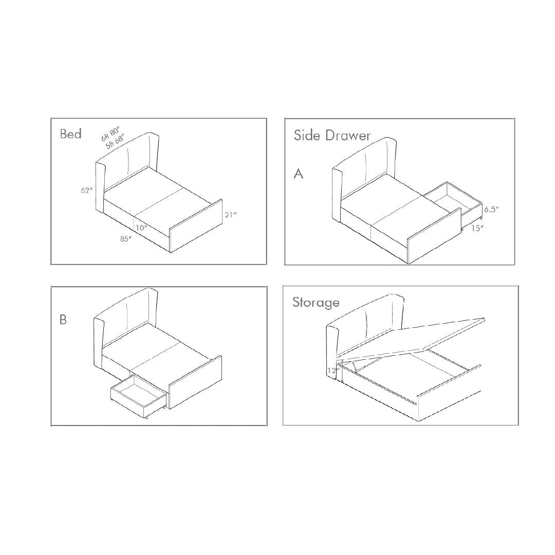 - 5' - W68" x L85" x H10"