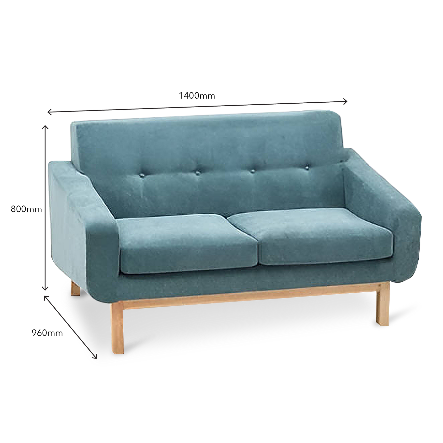 - 2 Seater: L1400mm x W960mm x H800mm