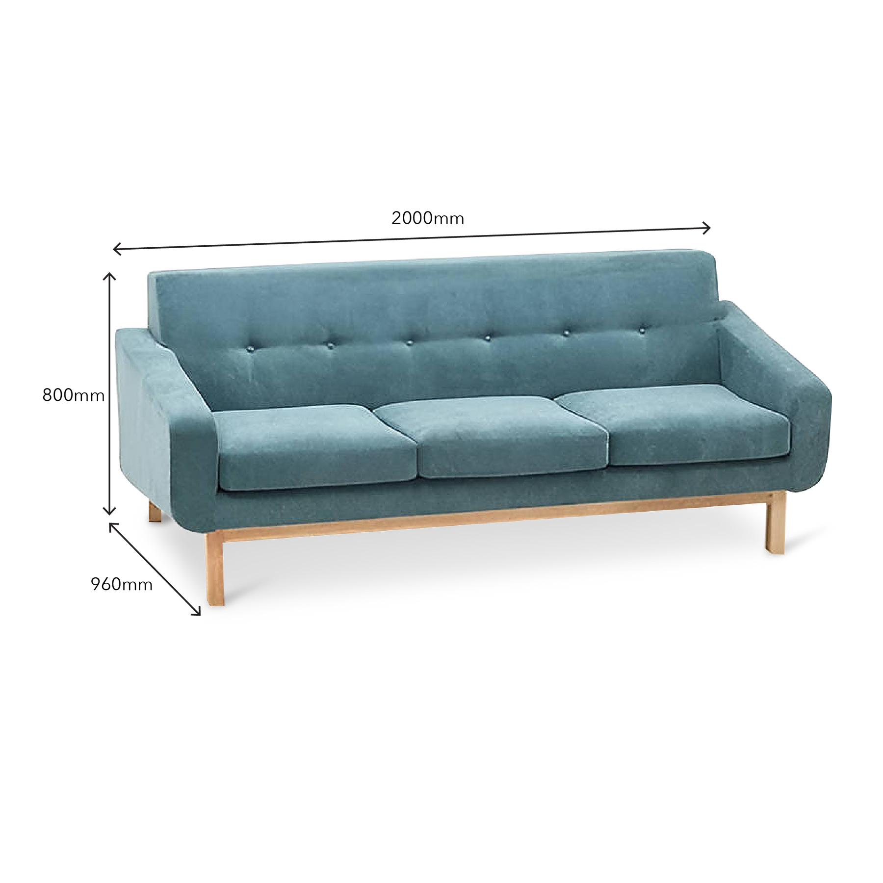 - 3 Seater: L2000mm x W960mm x H800mm