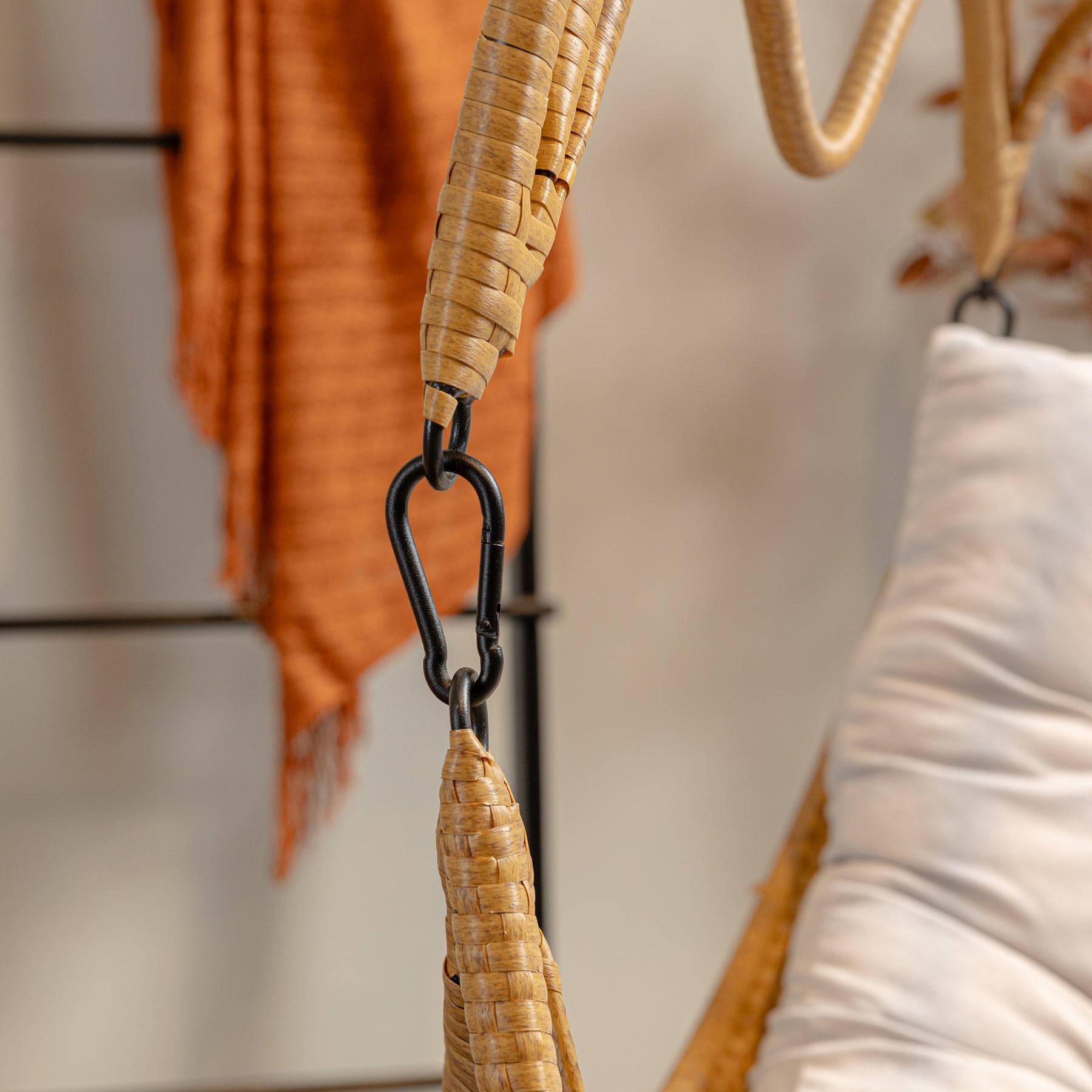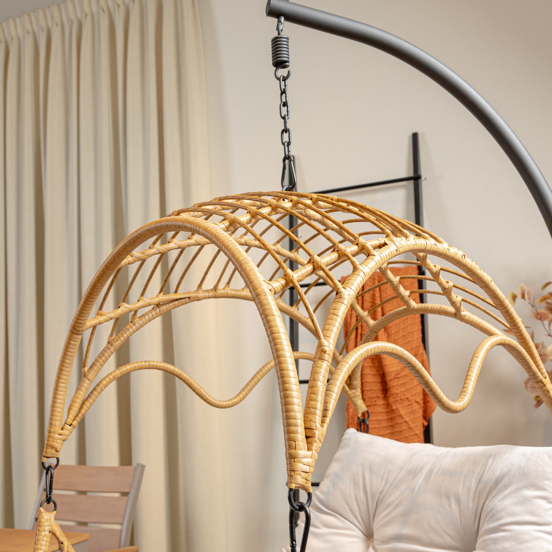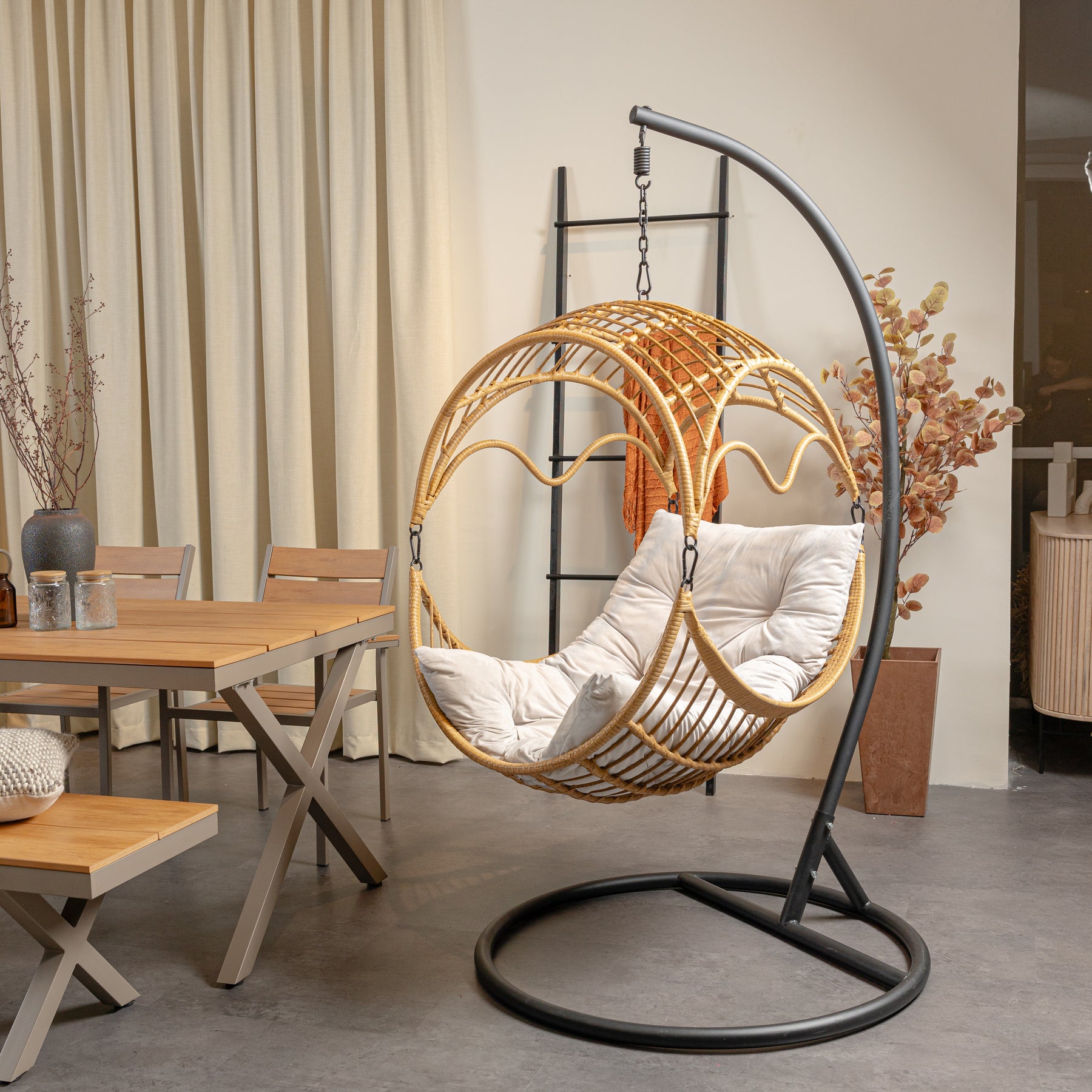 Make the most of lazy summer afternoons with SUNCE Porch Swing. The perfect addition to any garden or indoor space, our egg chair combined comfort, modern style, and effortless sophistication. Featuring an airy open weave PE rattan design, this chair is supported by a stand made with powder coated .