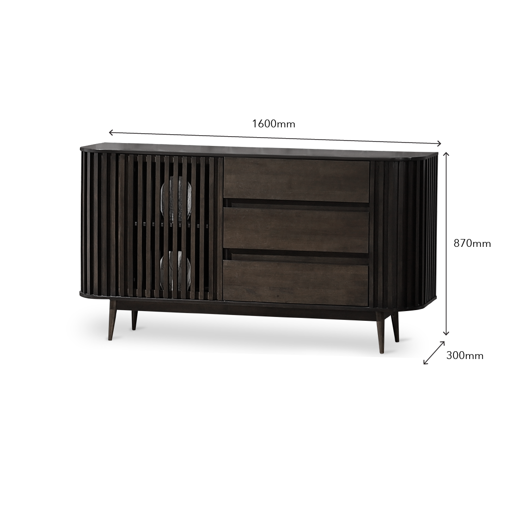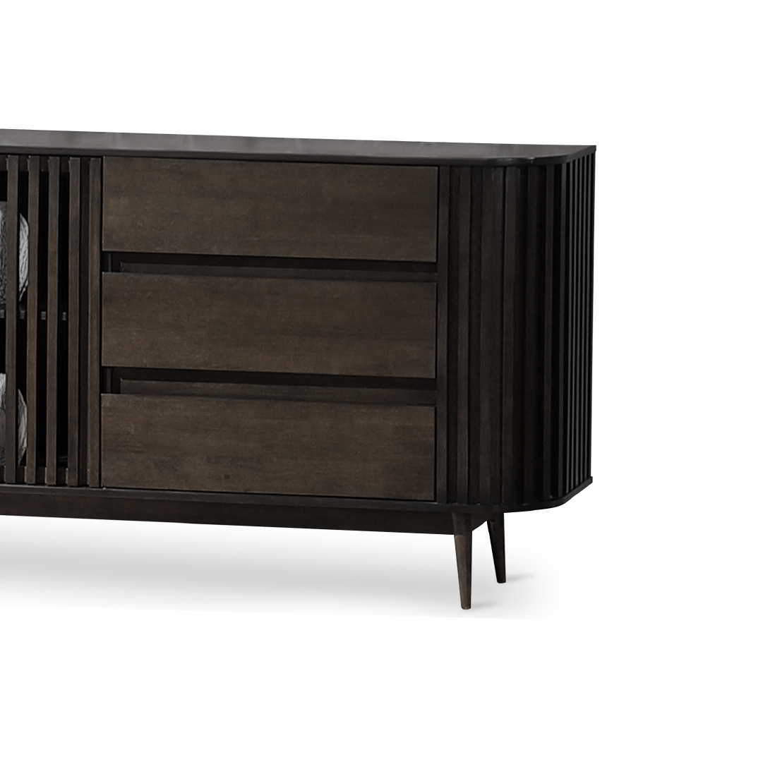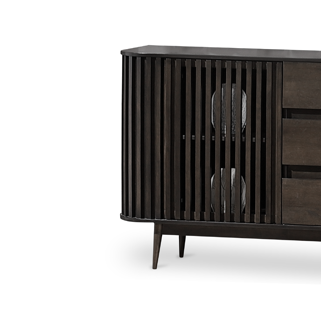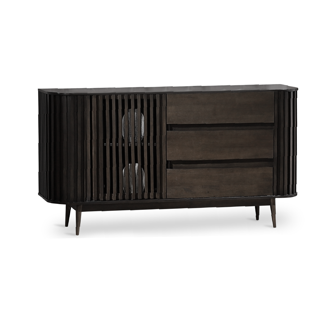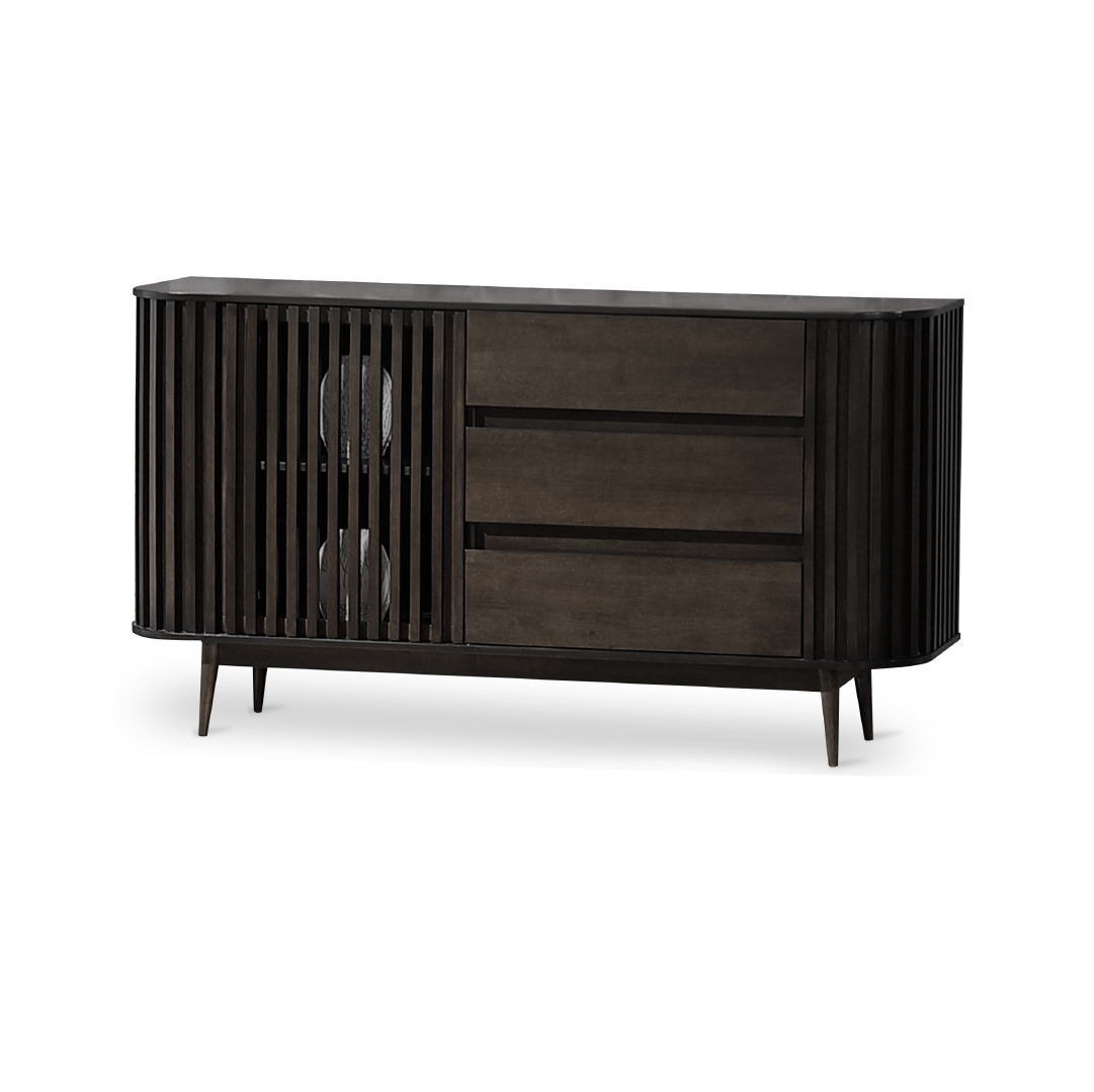 The Uluwatu Sideboard is a versatile and elegant furniture piece, featuring a modern design with natural warmth, constructed from rubberwood veneer for the body and solid rubberwood legs. Equipped with three spacious drawers for easy organization of essentials and a convenient slide door, this sideboard offers ample storage options while maintaining a sleek and minimalist aesthetic. Its durable construction and stylish appearance make it a practical and attractive addition to various rooms within your home, seamlessly blending sophistication with functional storage solutions.