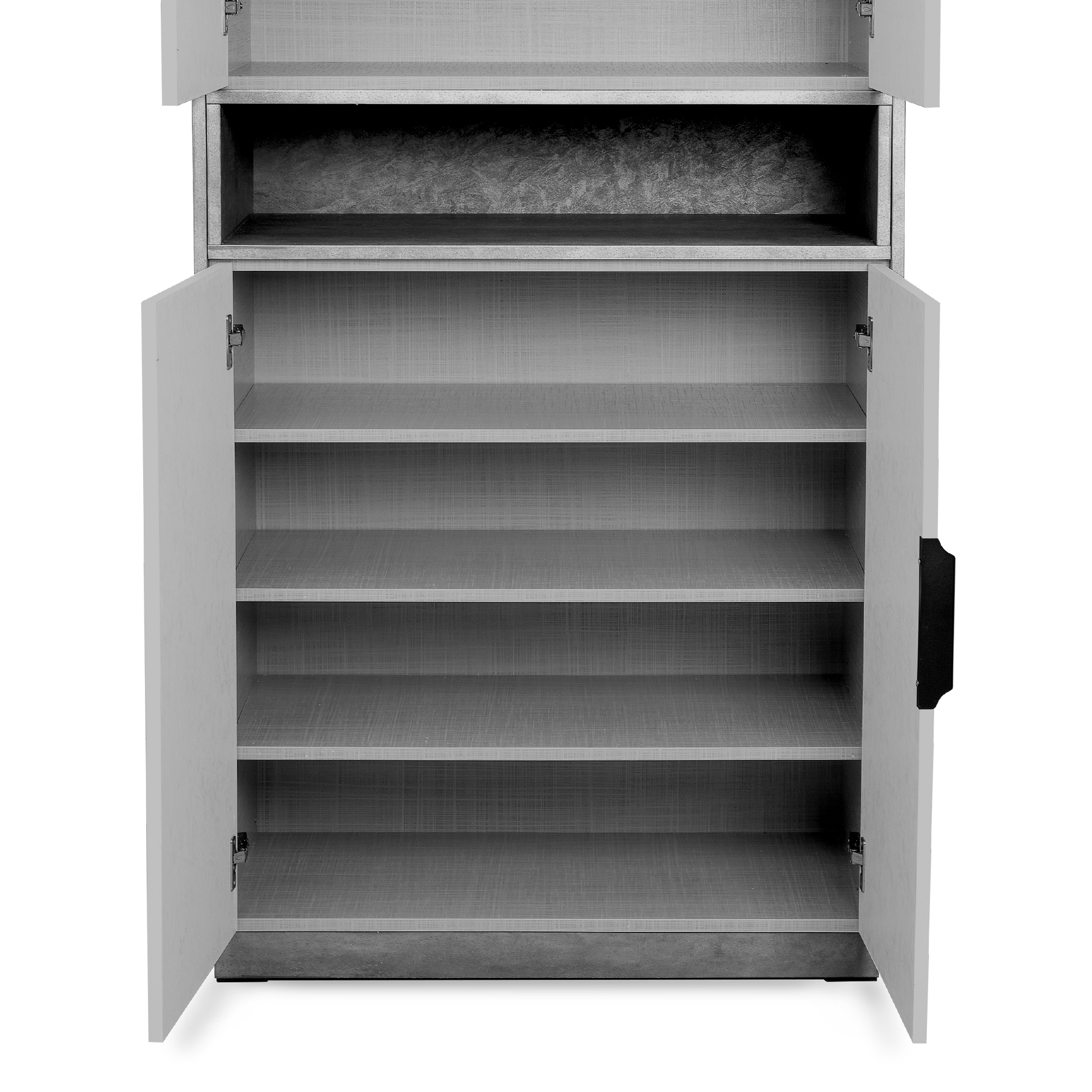 - Two compartments with eight tier shelves
