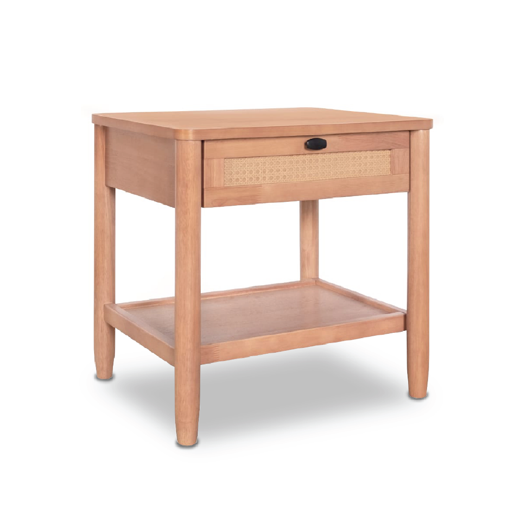 Featuring the WINNIE Side Table, the ideal fusion of style and utility. This table is built to last thanks to its strong rubberwood construction and high-quality MDF. The gorgeous PU rattan trimming gives it a special touch and adds a touch of refinement to any area. Improve your space with this adaptable side table, which was made to match your style and serve as a useful surface for your daily needs.