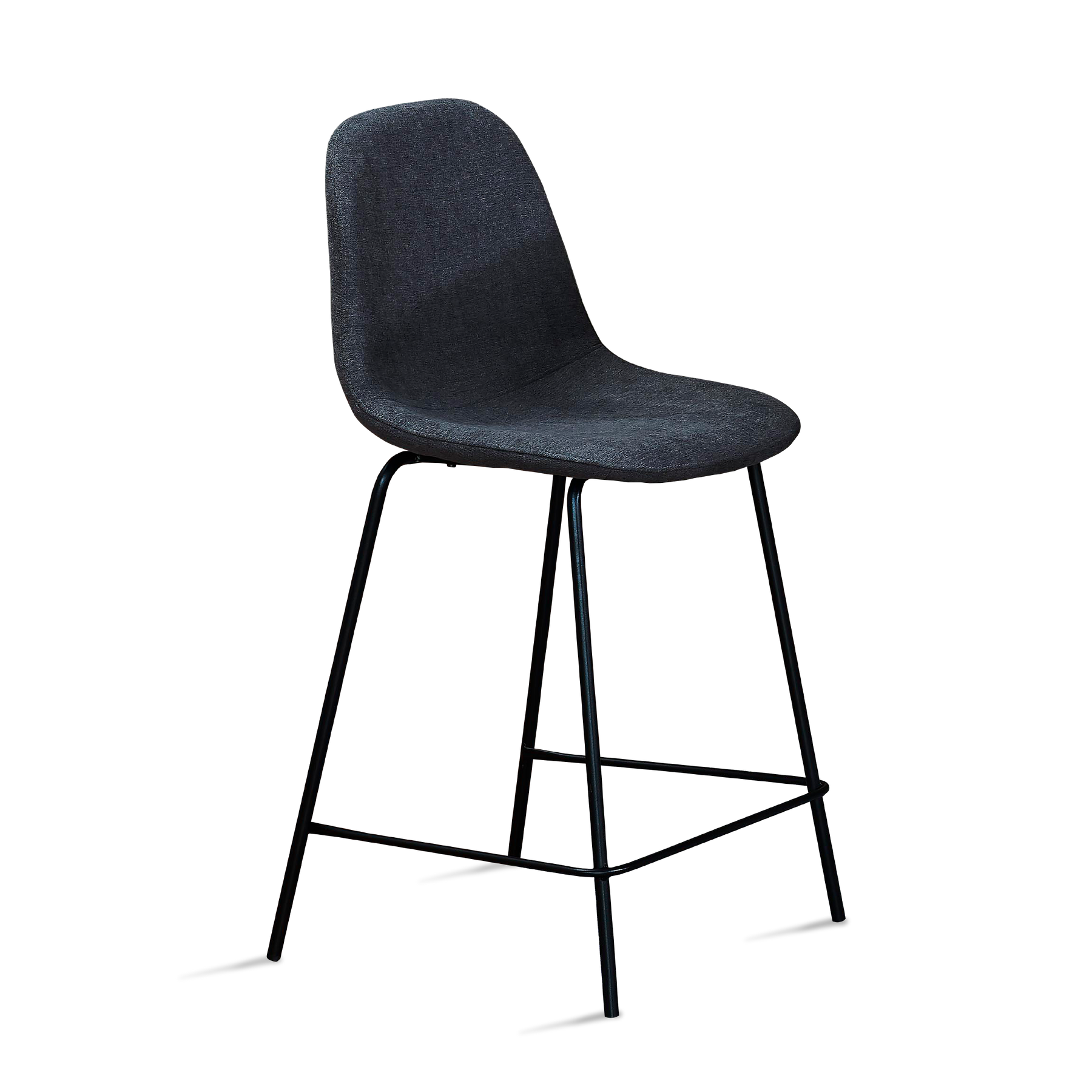 DANDY Island Chair Grey provides a comfortable seating experience for island counters or higher spaces. Its grey color of fabric and foam cushions, along with the padded backrest, provides a cozy and supportive feel. The chair's sleek black powder-coated legs add durability and a modern touch. It is a stylish addition to your dining area, combining comfort and modern contemporary design.