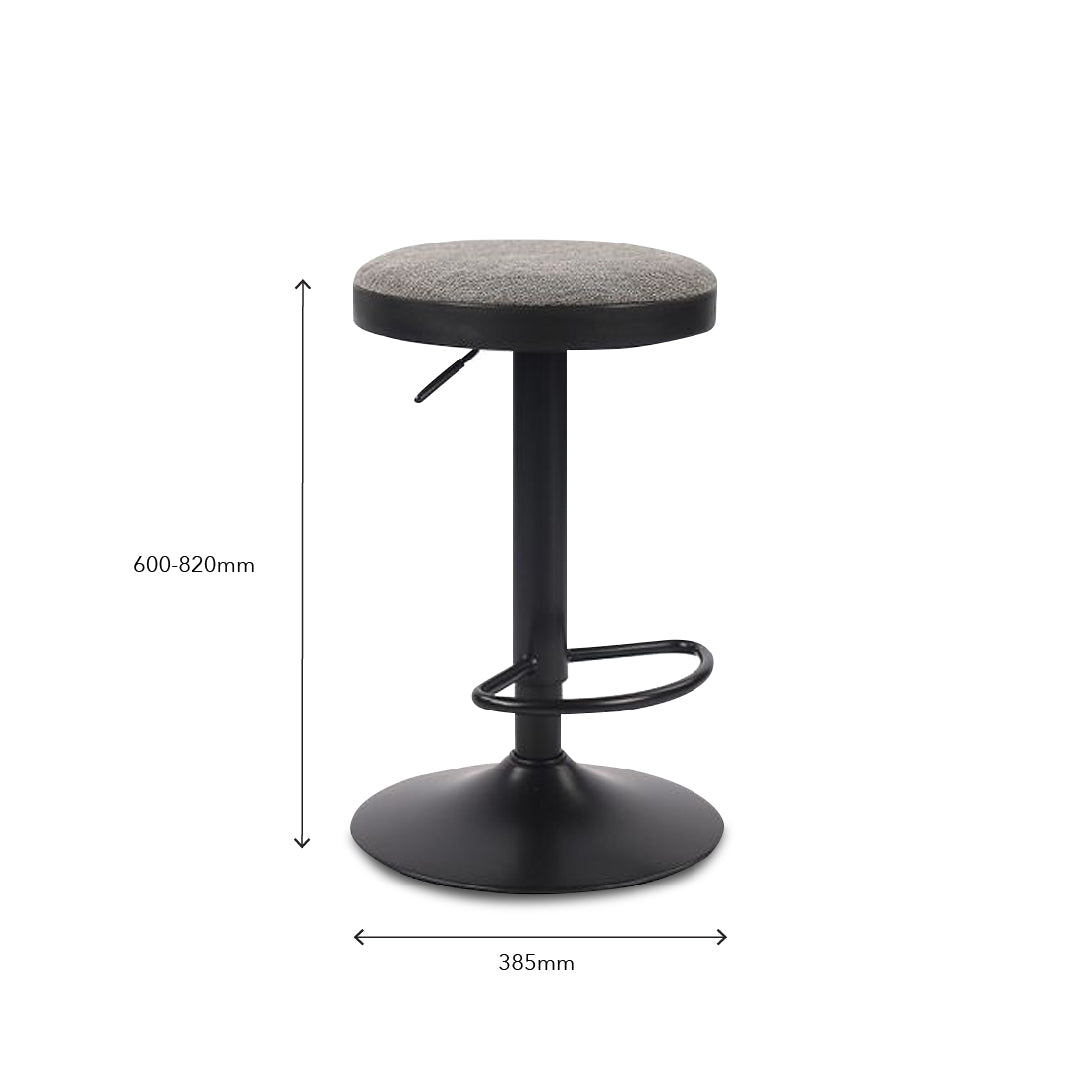 The Dayati Bar Stool is a versatile and stylish seating option, perfect for modern kitchens or bars. The seat is crafted with high-density foam and upholstered in water-repellent fabric for comfort and easy maintenance, available in dark grey or light grey. Its powder-coated steel legs provide durability and a sleek, modern look. Designed with practicality in mind, the stool offers adjustable height and a 360-degree swivel feature, along with a footrest for added support. The Dayati Bar Stool combines style, comfort, and functionality, making it a great addition to any space.