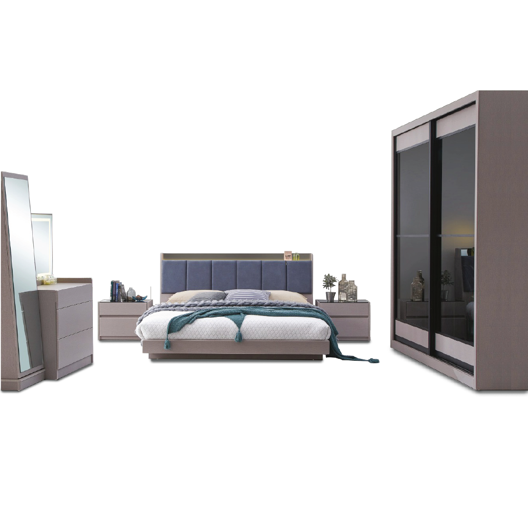 - Bedframe (without mattress) + 1 Unit Side Table + Dresser + Stool + Wardrobe