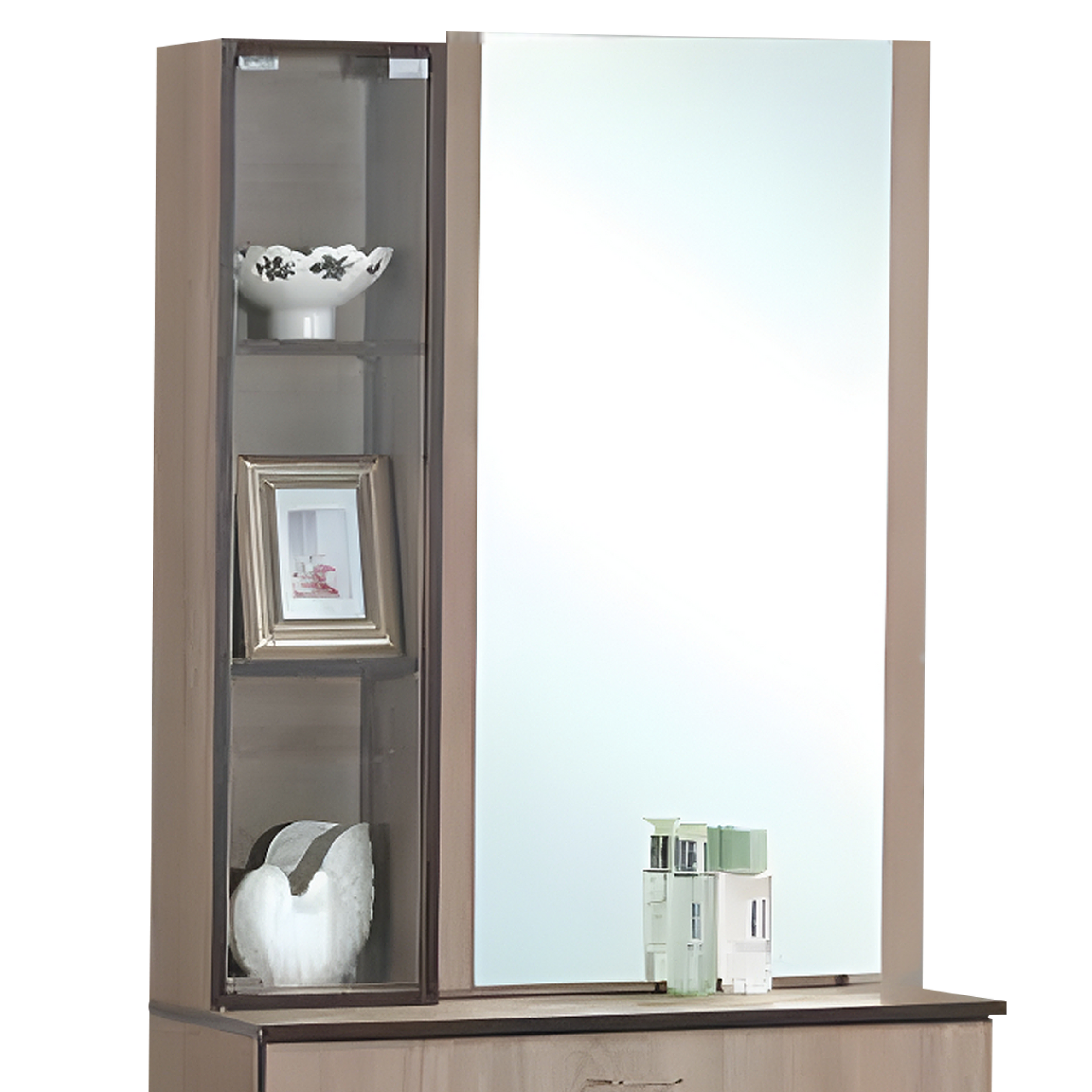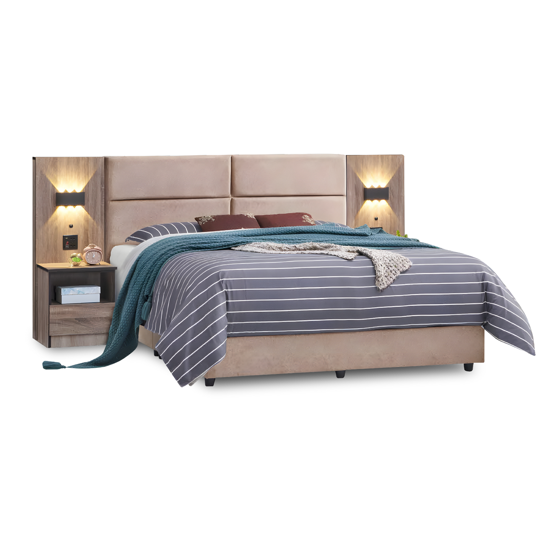 Bedframe (without mattress) + Wardrobe + Dresser Table + Stool + 1 Side Table + Back Panel