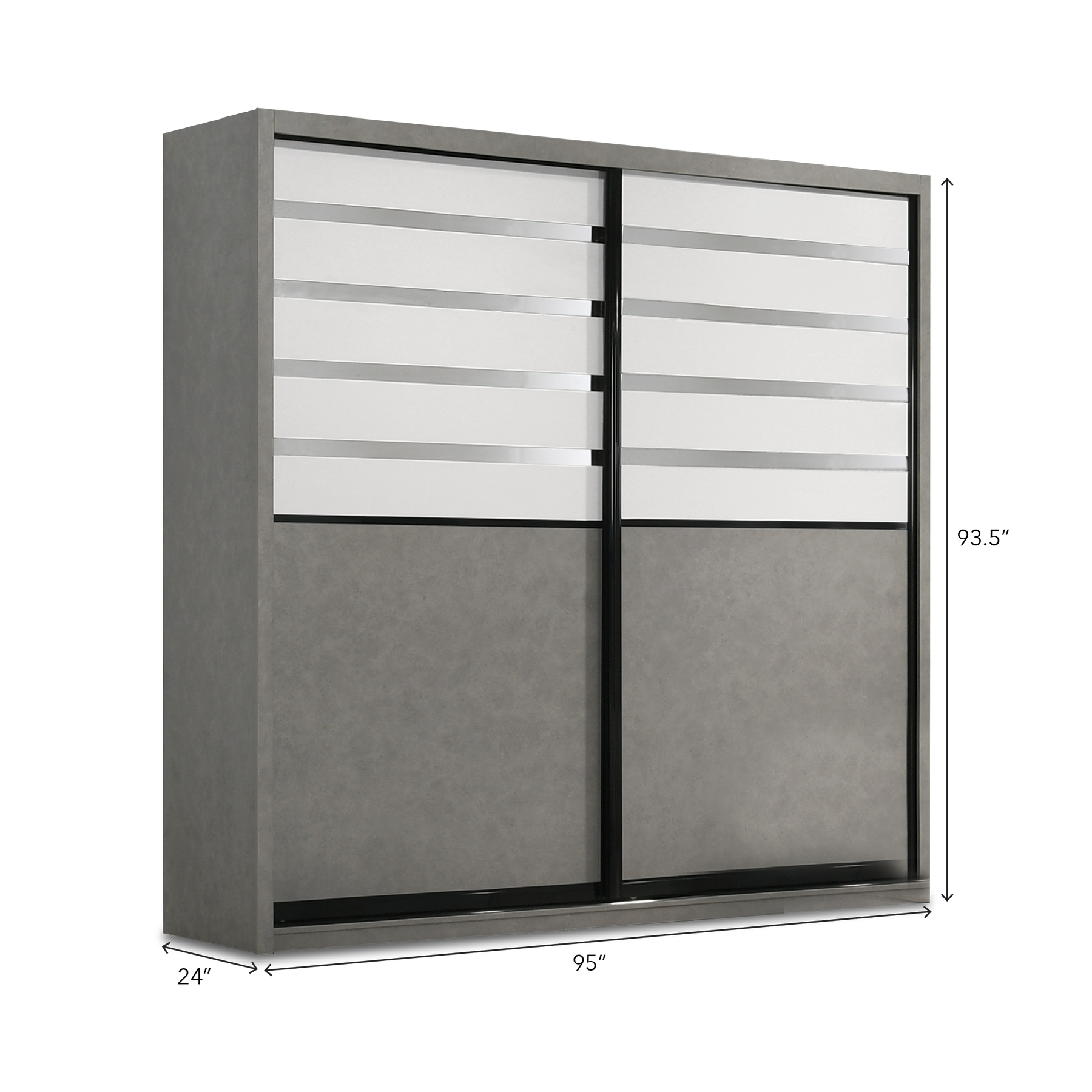 - 2 Sliding Door Wardrobe : L24" x W95" x H93.5"