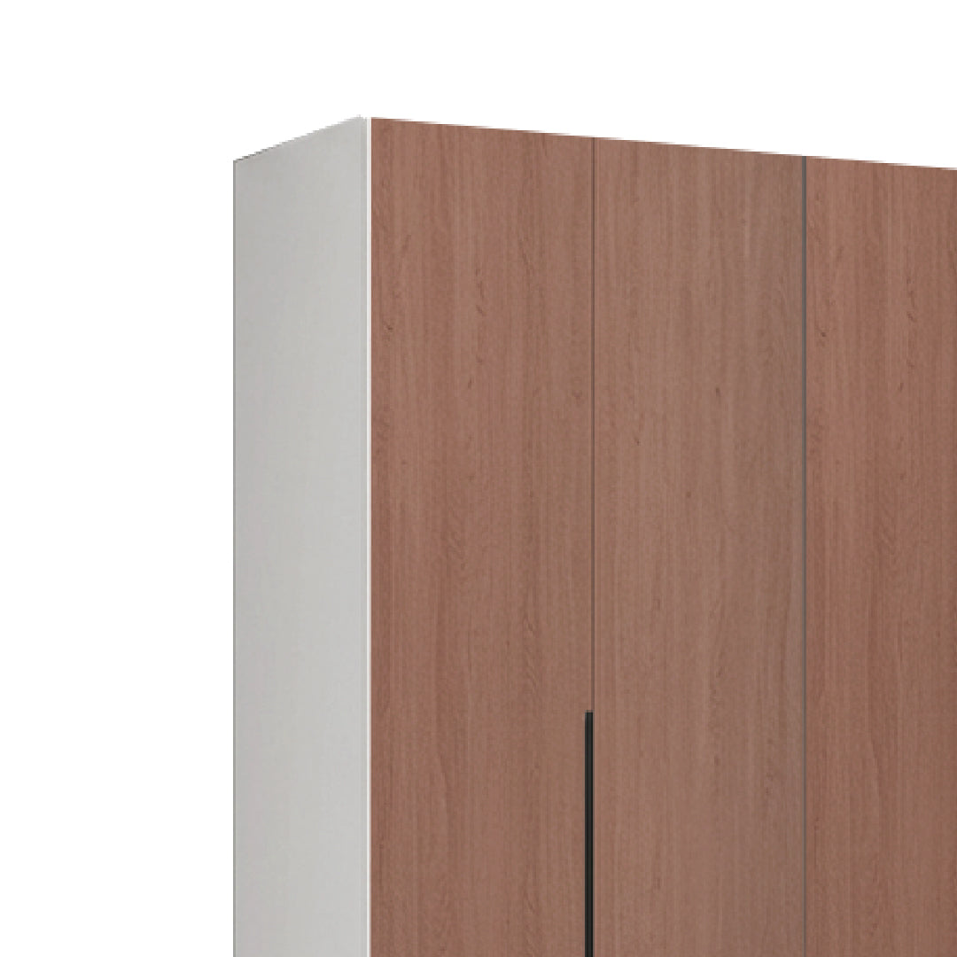 Sleek and modern, the EDOX wardrobe features a natural dark teak wood finish on durable MDF with hydraulic soft-closing doors. Inside, it offers 2 hanging rods, a lockable drawer, and 5 open shelves for versatile storage. A perfect blend of style and functionality.