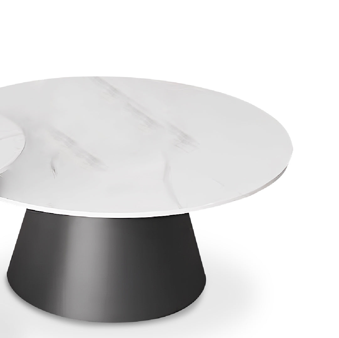 The Anju Coffee Table Set features a sleek glossy ceramic top paired with sturdy spray-painted steel legs. Including one coffee table and one side table, this set adds modern elegance and functionality to your living space.
