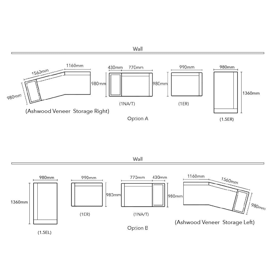 - 1.5 Seater Right / Left Arm: W1360 x D980 x H710-950 (mm)