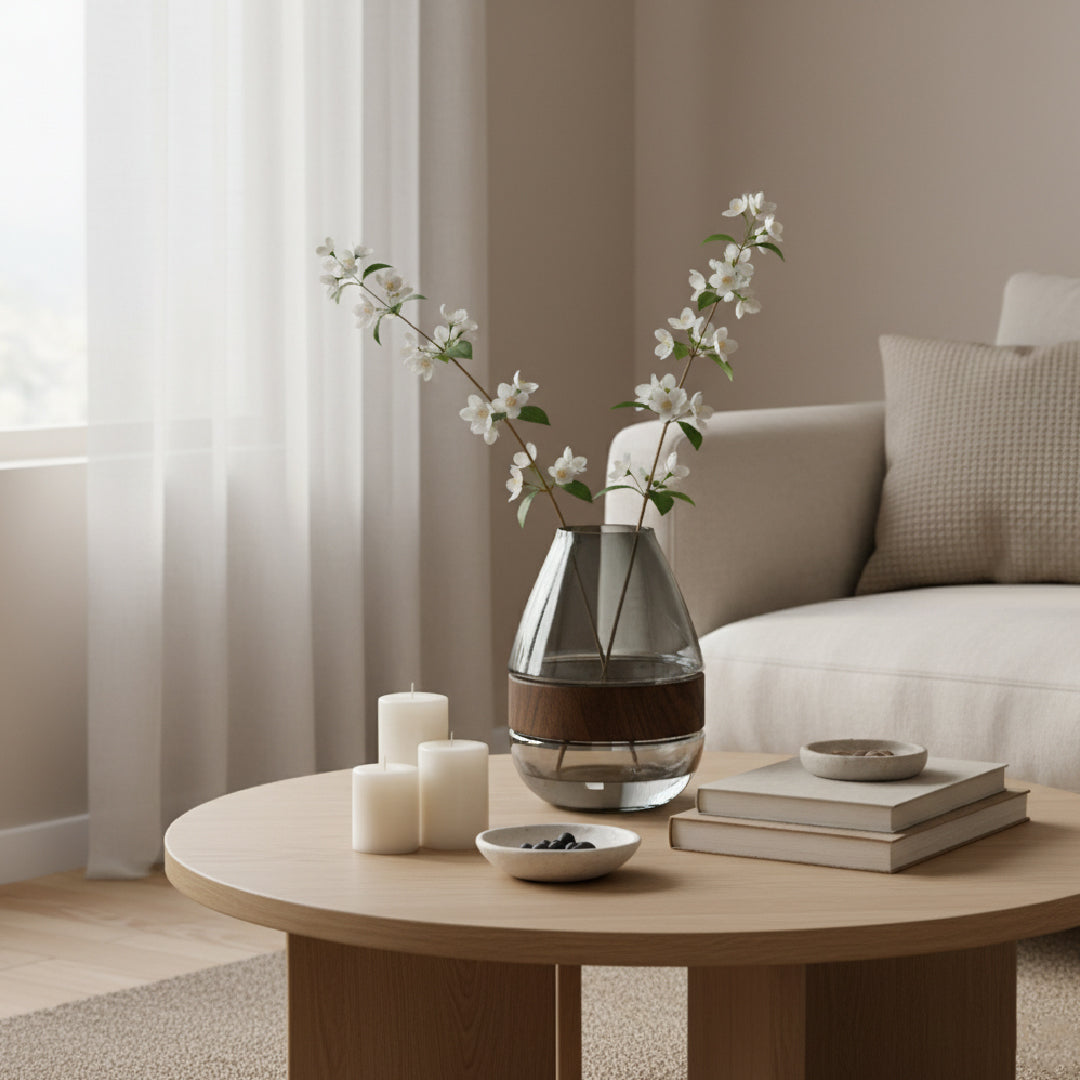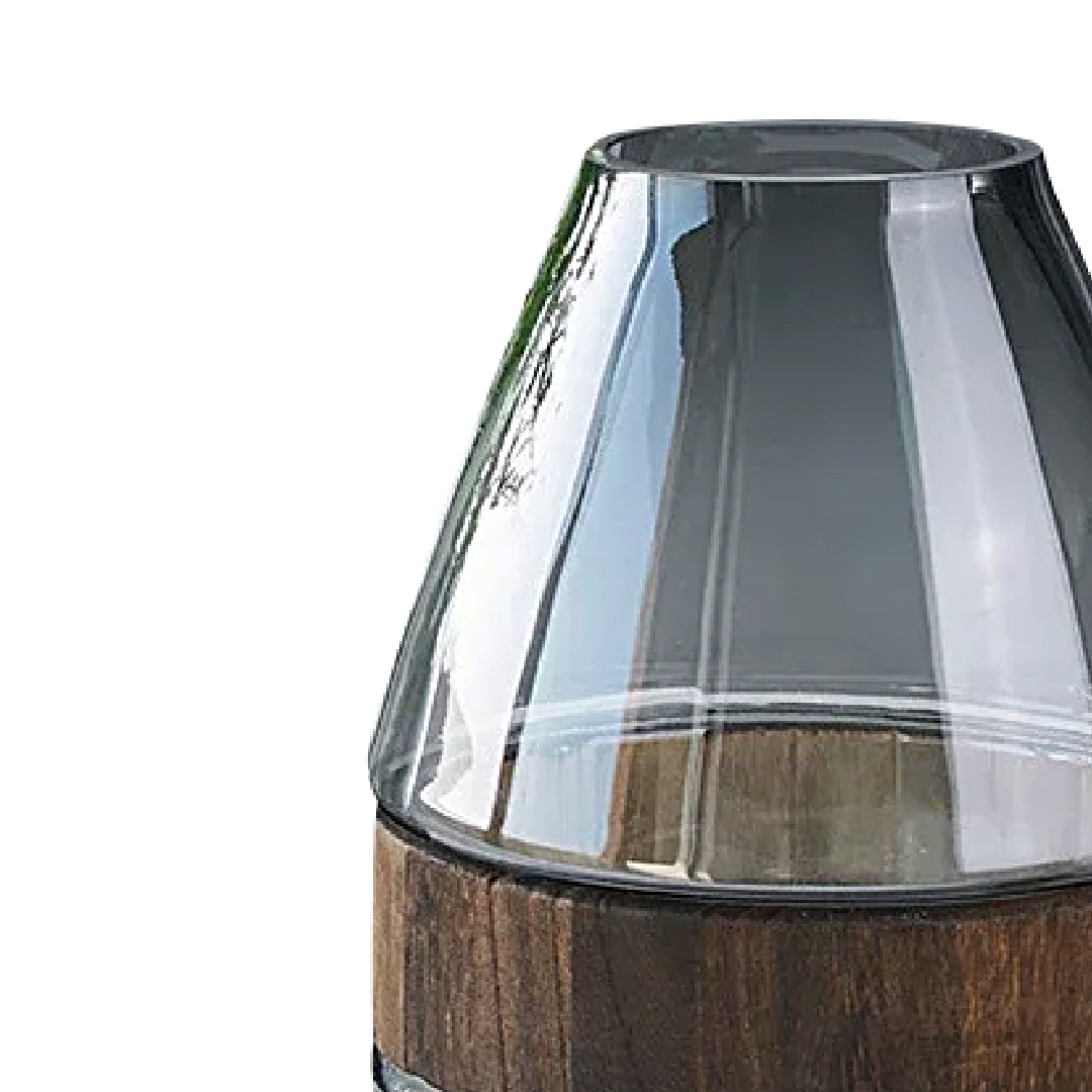 Add a touch of modern elegance to your space with the Apollo I Glass Vase. The smooth glass sits beautifully on a warm wood base, combining natural textures with a refined, contemporary look. It's designed to highlight your favorite blooms or stand alone as a work of art.