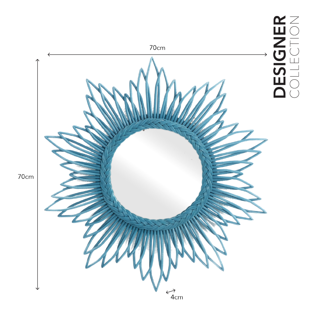 The Sole Mirror is more than just a reflective surface; it's a work of art that infuses your home with the beauty of nature. With its flower-shaped design, crafted from sustainable Rattan Core, and adorned with a serene Perennial Blue finish, it adds a touch of whimsy and sophistication to your interior decor. Whether displayed in a bedroom, hallway, or living room, the Sole Mirror is a decorative masterpiece that brings a sense of wonder and style to your living space.