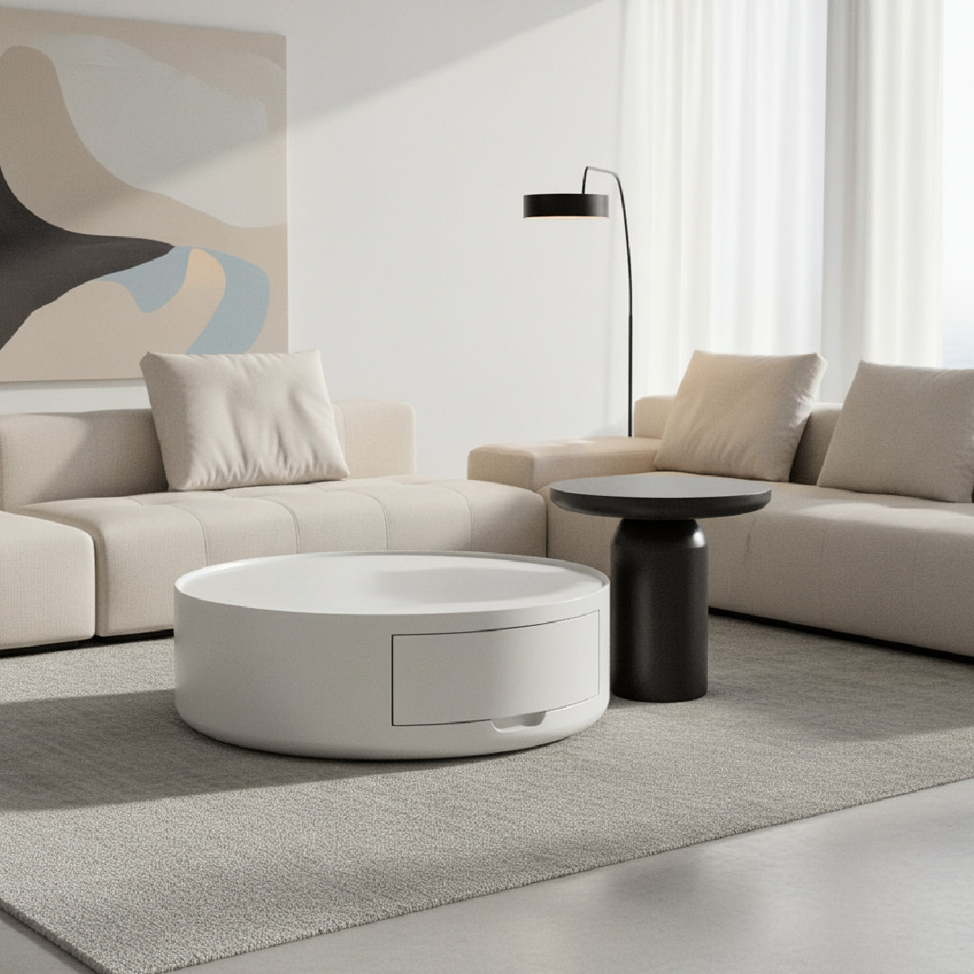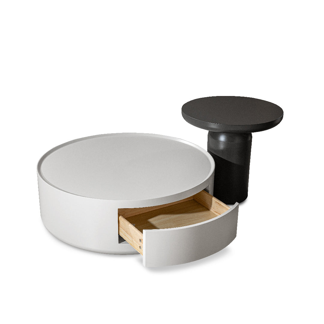 The Lowena Wood Coffee Table Set features a clean MDF design with functional drawers, offering both elegance and organized storage in one set.