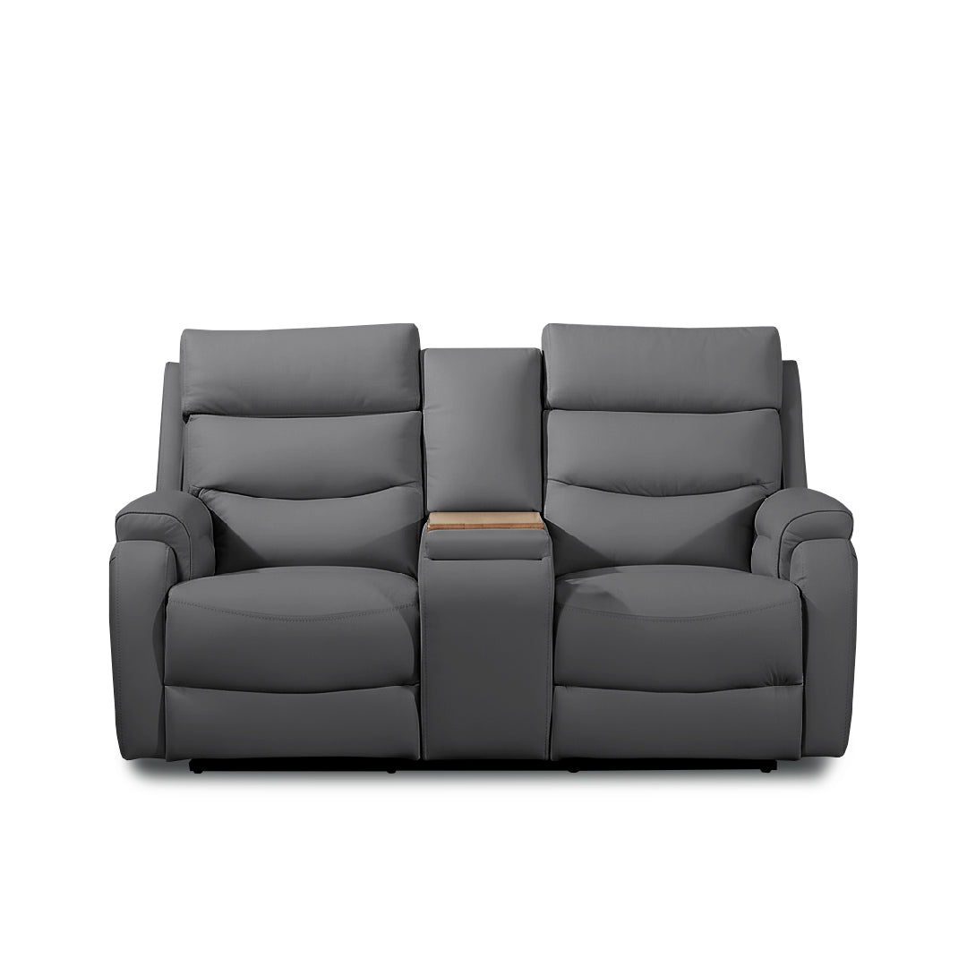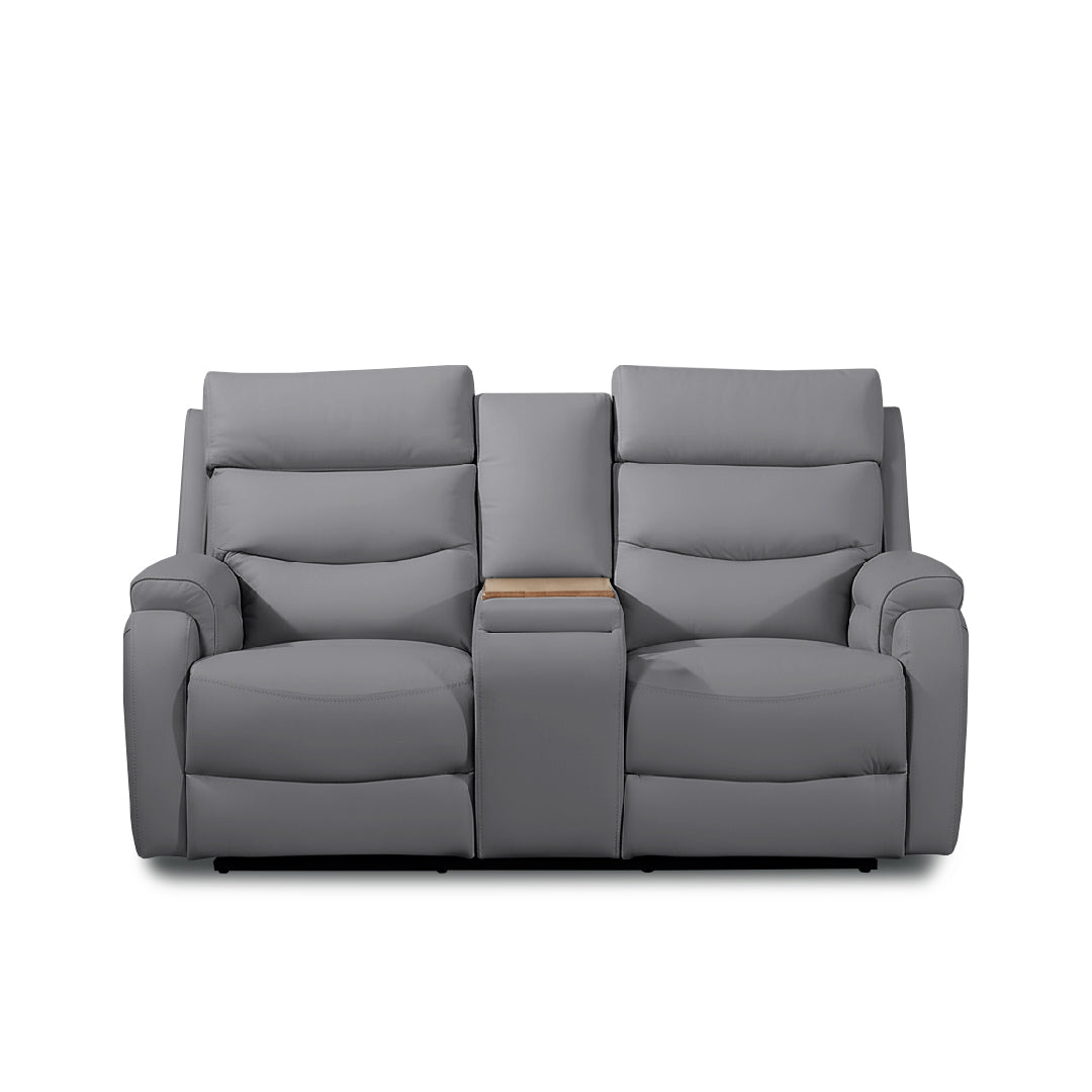 Rydia Manual Recliner 2-Seater Sofa combines comfort and functionality with its half-leather upholstery, high-density foam seat, double pocket spring, and zigzag spring support on a solid Meranti wood frame. Designed for relaxation, it features manual recliners on both seats, adjustable headrests, a convenient storage table, and integrated cup holders for added comfort and practicality.