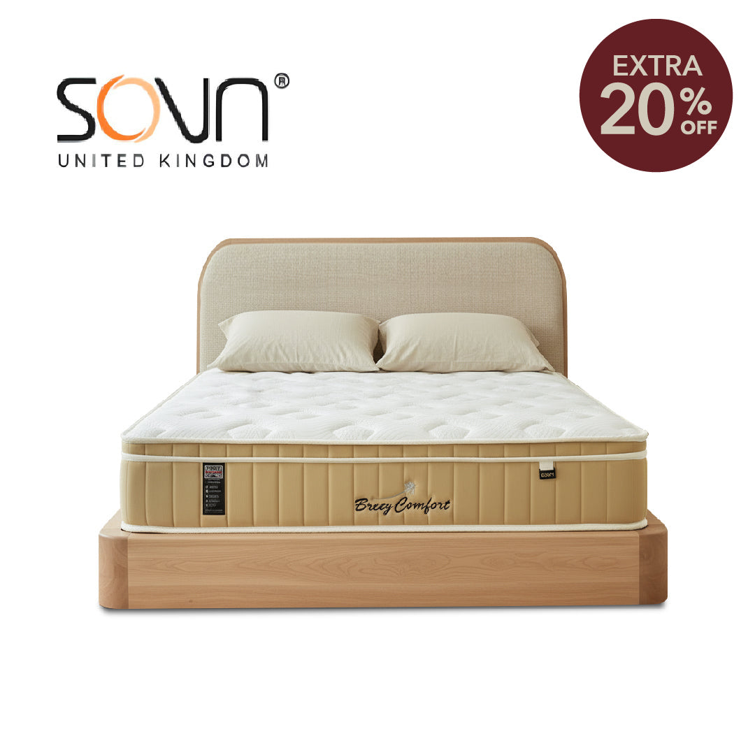 Experience balanced comfort with the SOVN Breez Comfort Mattress, designed with Cool Feel fabric, high-density foam, and breathable cotton felt for a fresh and cozy sleep. Its 5-zone individual pocketed spring system provides targeted support, while foam encasement ensures lasting durability. With a medium firmness level of 6/10, it offers the perfect blend of softness and support. Backed by a 15-year warranty and available in sizes from single to king, it’s crafted to suit every sleeper.