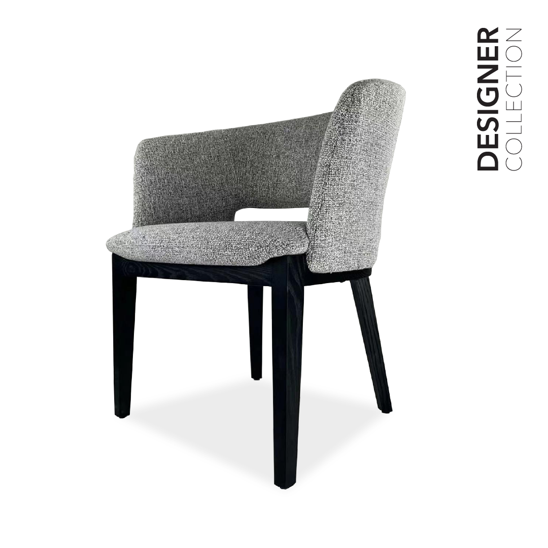 Featuring the NOE Lounge Chair, which combines comfort and style. It is sophisticated, with its luxurious upholstered fabric and sleek black solid ash wood legs providing support. Its deep shade of Dark Jungle Grey gives any area a hint of luxury. The NOE Lounge Chair will enhance your ability to unwind.