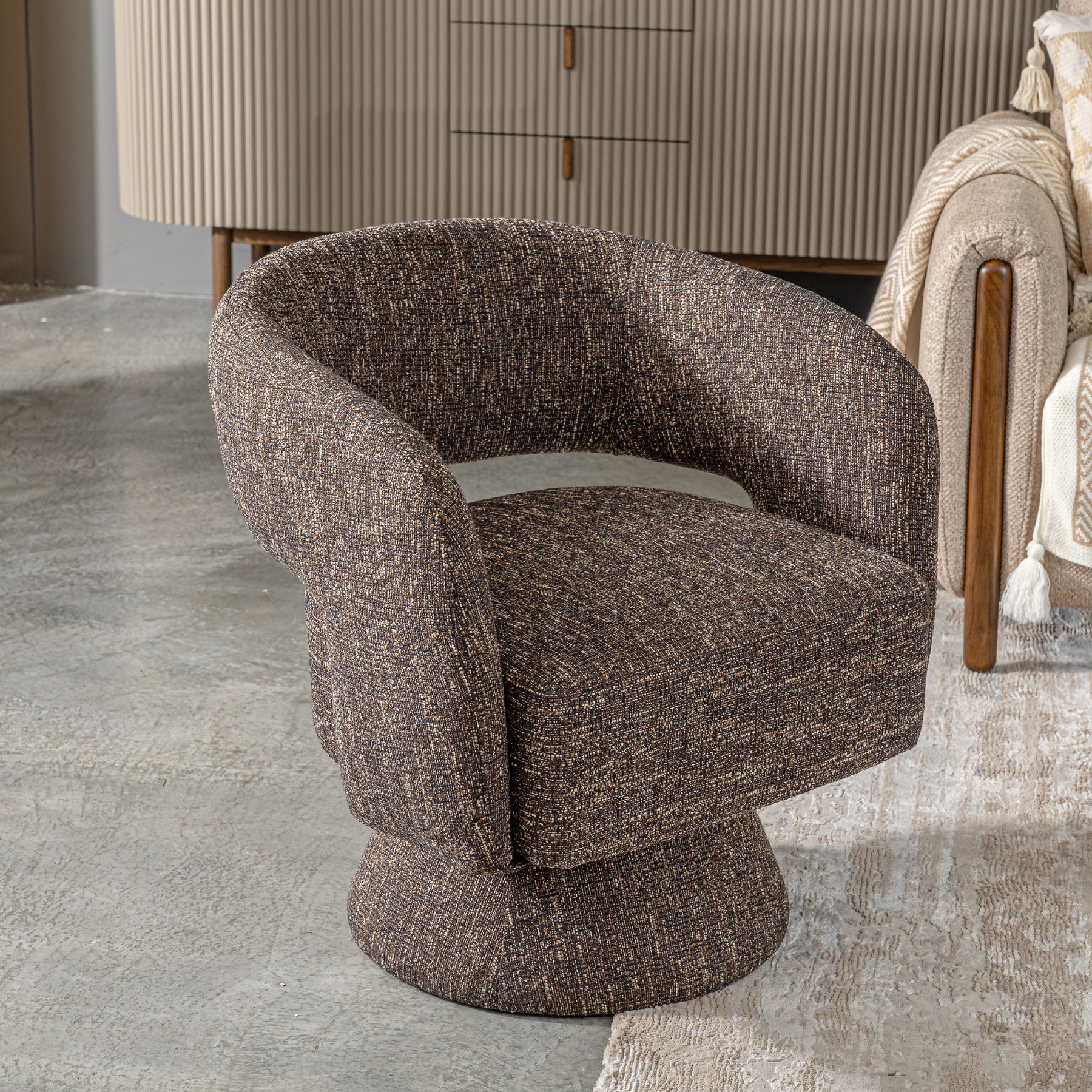 The Whitney Lounge Chair combines comfort and style with its soft fabric upholstery, offering a luxurious seating experience. Its clean lines and modern design make it an ideal addition to any contemporary living space, providing both relaxation and elegance. The chair's supportive structure ensures durability while maintaining a cozy, inviting feel, making it a perfect choice for creating a stylish and comfortable lounge area.