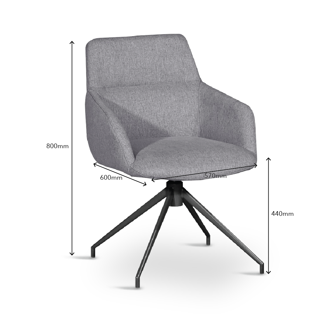 The MARIBEL Swivel Dining Chair enhances your eating experience by fusing fashion and utility. It has a luxurious fabric-upholstered seat that is cushioned with foam, providing the ideal balance of comfort and style. The chair's 360-degree swivel seat expands your seating options while the powder-coated legs guarantee solidity and longevity. You can easily dine in comfort and style with the MARIBEL Swivel Dining Chair.