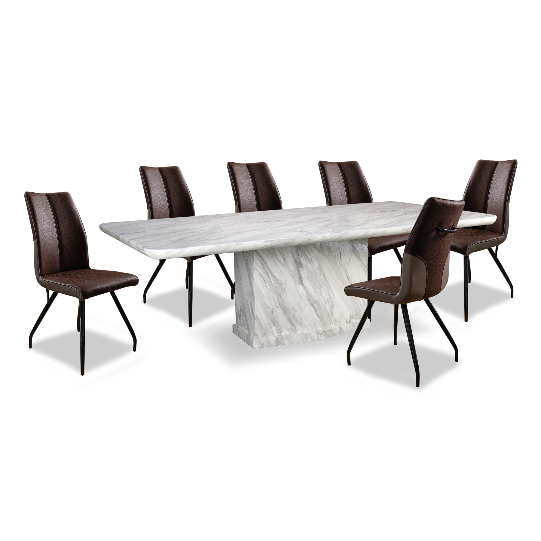 Presenting the ALICANTE Marble Dining Set – a fusion of timeless elegance and impeccable craftsmanship. Crafted exclusively from marble, this set exudes sophistication and luxury. With a range of sizes available, the ALICANTE Dining Set seamlessly adapts to your space, ensuring a perfect fit. Immerse yourself in the allure of marble's enduring beauty as the ALICANTE Marble Dining Set takes center stage in your dining area, promising an atmosphere of refined luxury and setting the tone for memorable dining experiences.