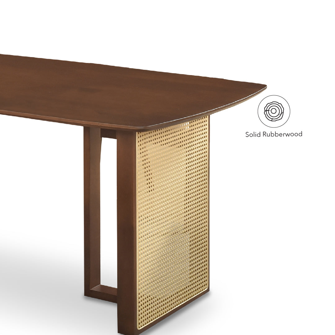 The Chase II Dining Set in Walnut is a stylish and functional ensemble that includes a solid rubberwood dining table and six matching chairs. Featuring a walnut finish, the set showcases elegant backrests and comfortable fabric-upholstered seats, creating a warm and inviting dining experience.