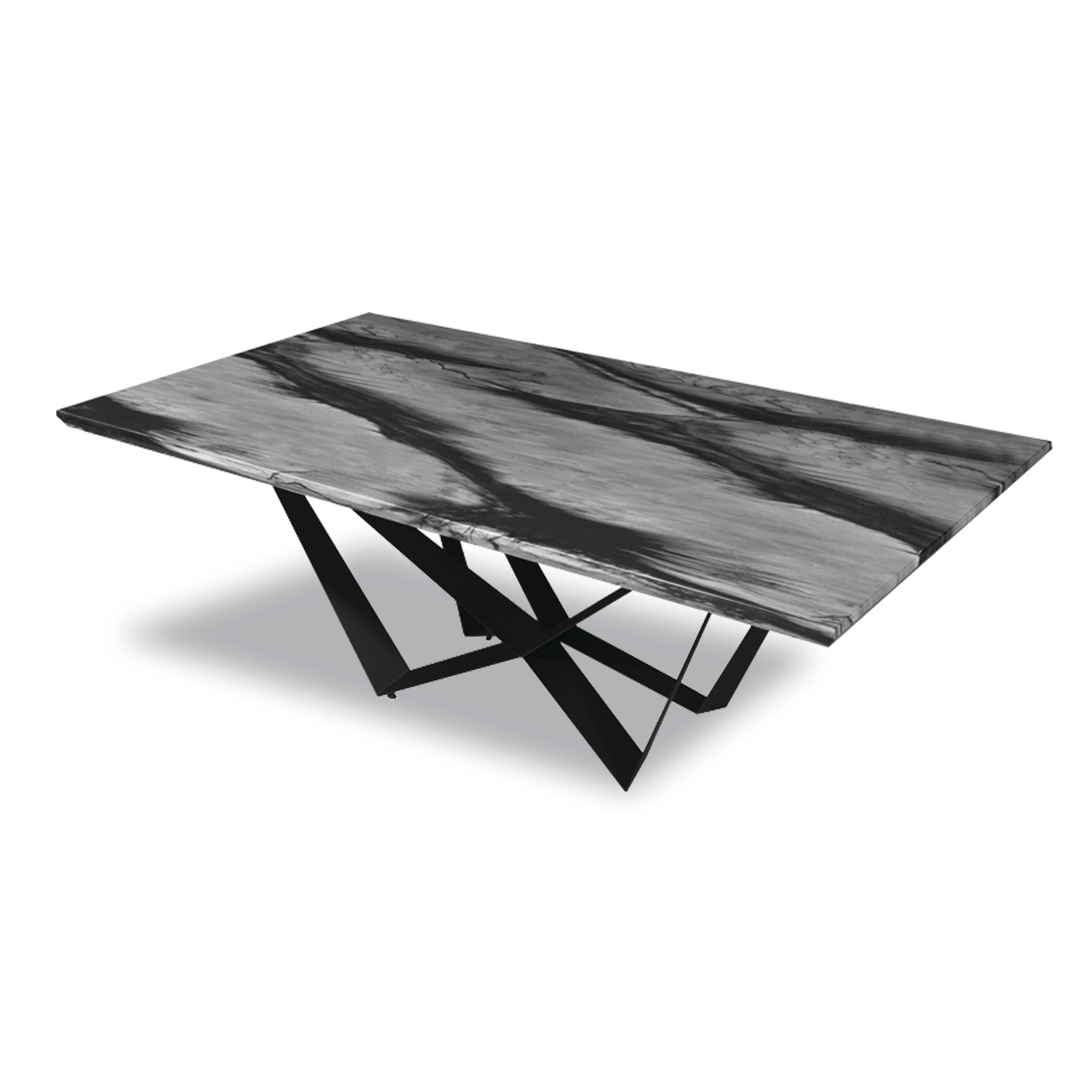 - Dining Table : Laminated Marble with Marble core with Black Metal Legs