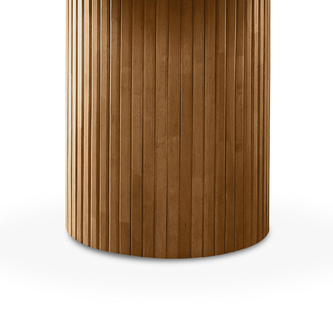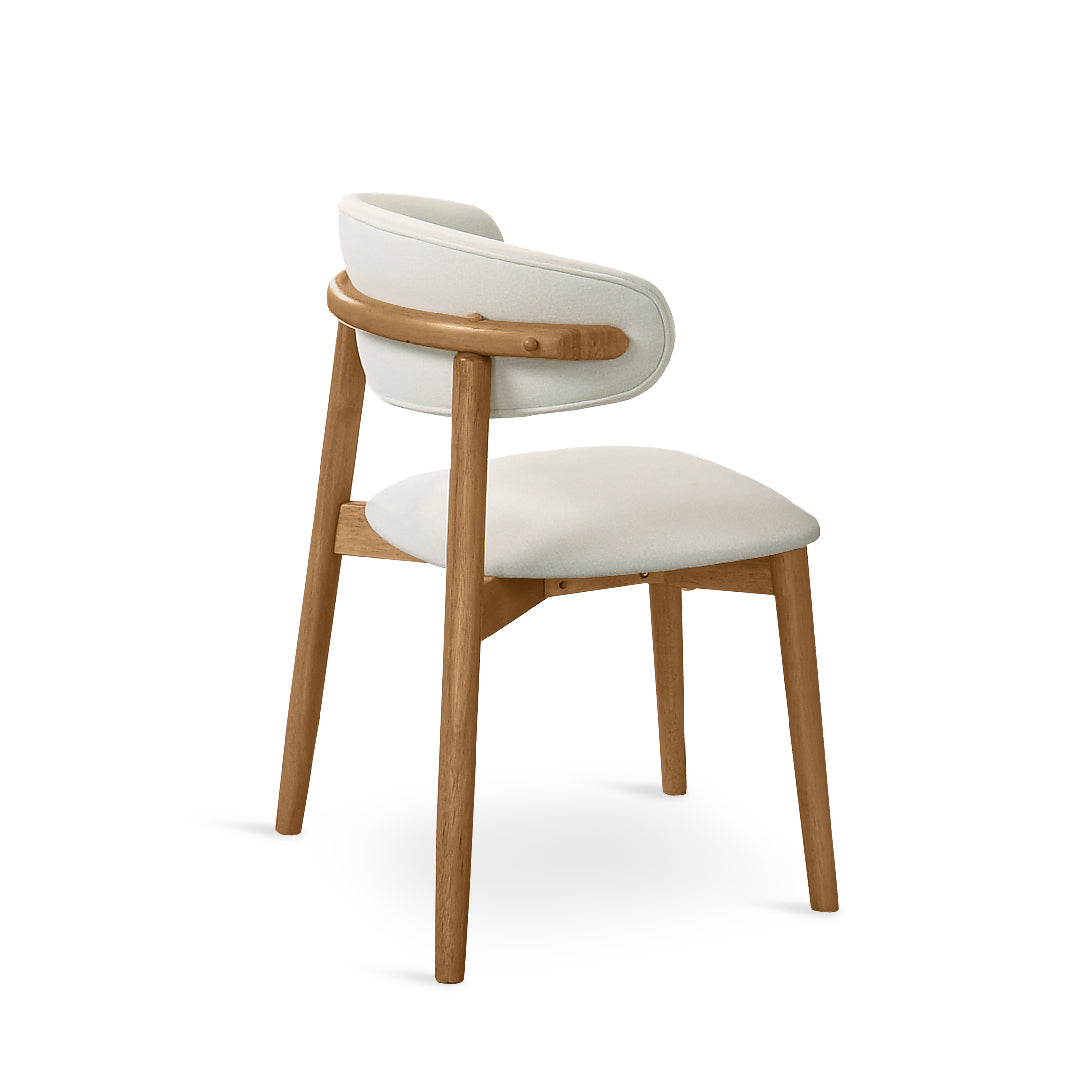 A stylish round dining set crafted from solid rubberwood, featuring a smooth tabletop and four cushioned fabric chairs for comfort. Perfect for adding warmth and elegance to your dining space.