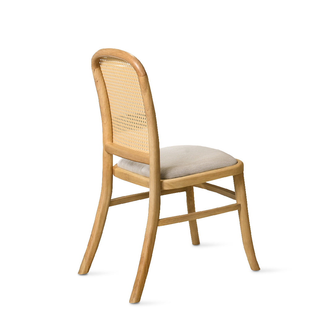 The Zukumi Light Beech Dining Set showcases timeless elegance with its round solid rubberwood table and four matching chairs. Finished in a rich dark walnut tone, each chair features a comfortable fabric seat, blending style and warmth for an inviting dining experience.