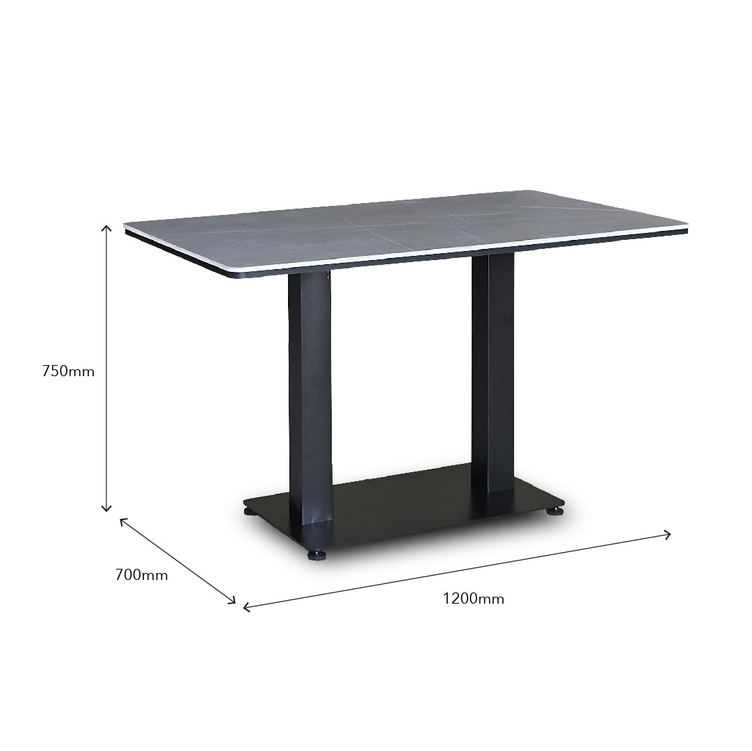 The Dali Rectangle Cafe Table combines elegance and durability with its sintered stone tabletop and sturdy metal legs. Available in three sophisticated colors—black, grey, and white—this table is designed to complement any modern café or dining space. Its sleek and minimalist design makes it a stylish and practical addition to both residential and commercial settings.