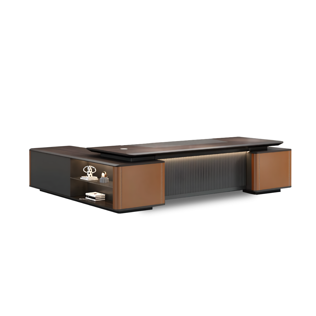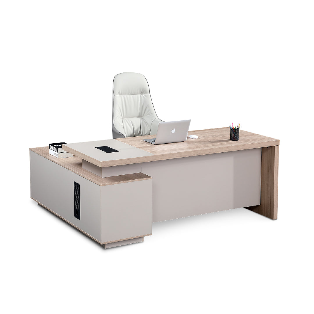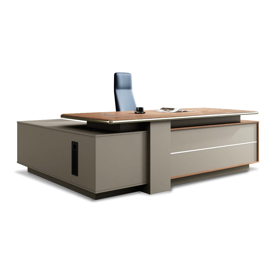 Functional and contemporary, sit down to a stylish, sturdy table with a modern look. These director tables have been designed for your office needs and are perfect for CEO or managerial level office staff.