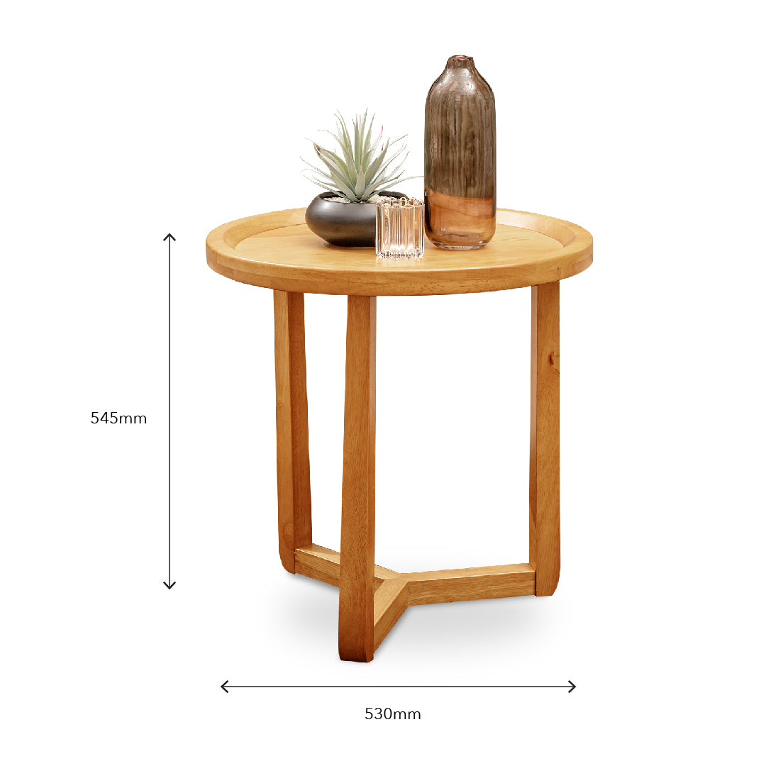 Crafted from solid rubberwood, the Daem End Table brings a touch of warmth and durability to any space. Its sleek design and sturdy build make it a perfect addition to your home.