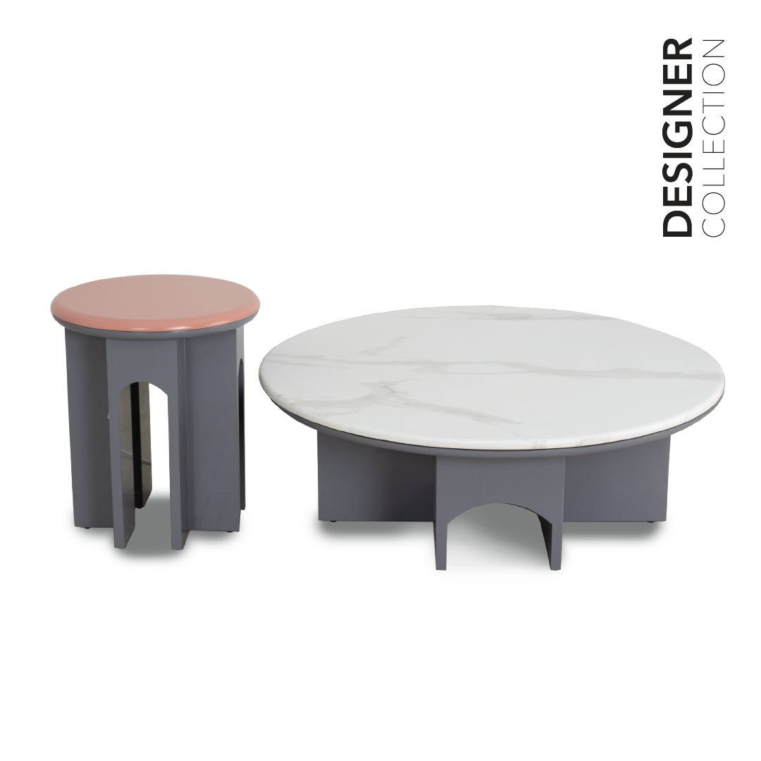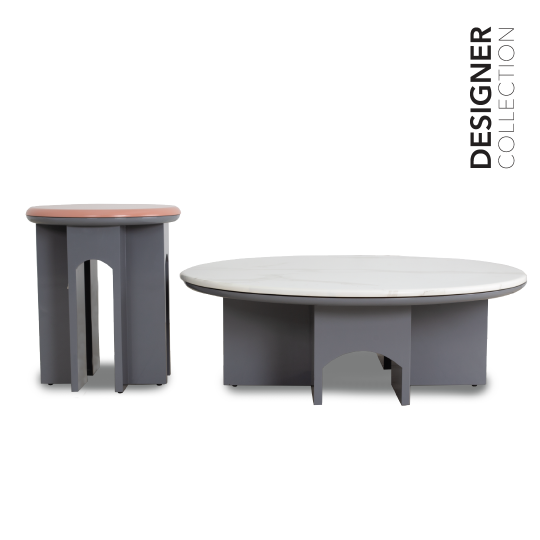 The Vagary Coffee Table set is a combination of a coffee table and a side table, both meticulously crafted with a solid wood frame and marble tabletops. This pairing of materials results in a sophisticated and enduring furniture set that seamlessly blends classic and modern design elements. The set not only serves as functional pieces but also as stylish focal points in your living room or any other area of your home, offering a balance of durability and aesthetics.