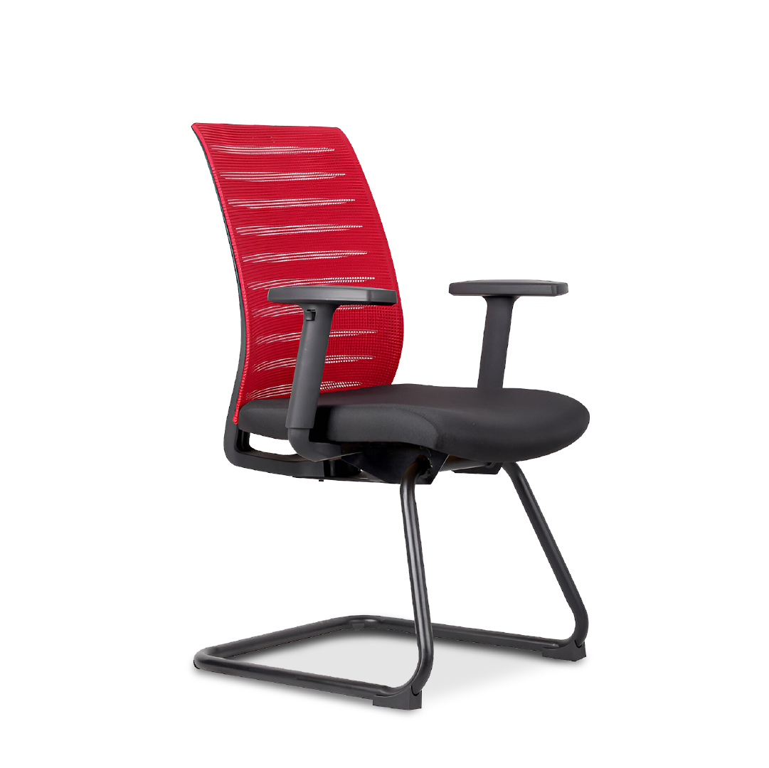 The Elgrand Visitor Chair features a modern design with polypropylene armrests, molded foam padding, and epoxy black cantilever legs. Its striking red with black color scheme adds vibrancy to any space. This chair offers both comfort and contemporary style, making it suitable for various settings such as offices, reception areas, or conference rooms.