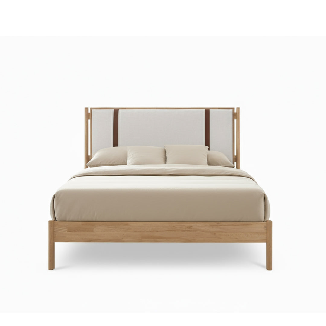 Crafted from full solid rubberwood with elegant PU belt detailing, this bed combines natural strength with refined design. Available in both queen and king sizes to suit your bedroom space.
