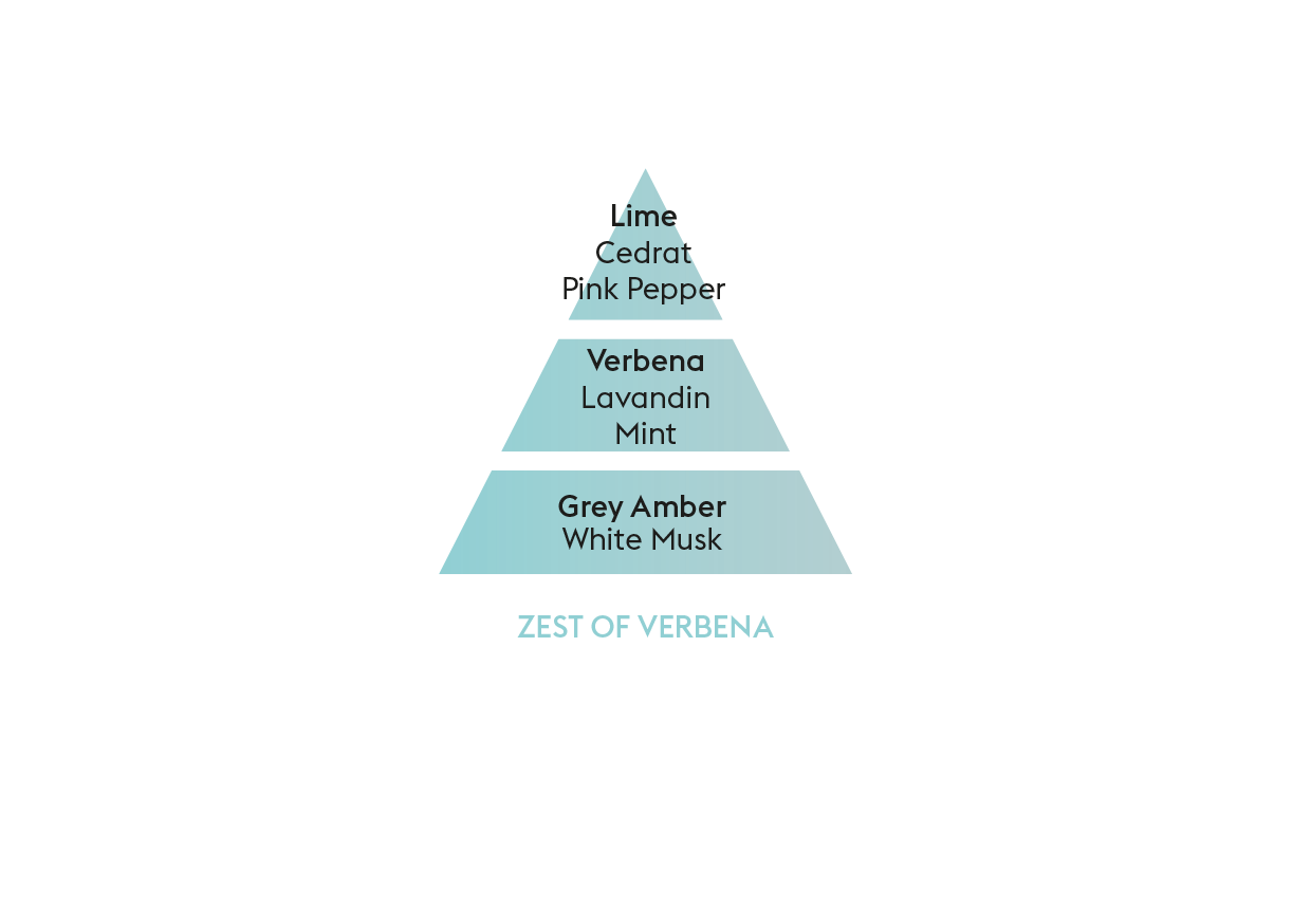 Zest of Verbena is a fresh and citrusy fragrance. The top releases the sparkling freshness of citrus zest, enhanced by the spicy facet of pink pepper. The refined heart reveals the naturalness of verbena leaves, subtly underlined by lavender and mint. To give roundness and elegance to this olfactory composition, Lampe Berger has adorned it with a soft powdery base that combines ambergris and white musk. All the naturalness and vitality of freshly picked verbena.