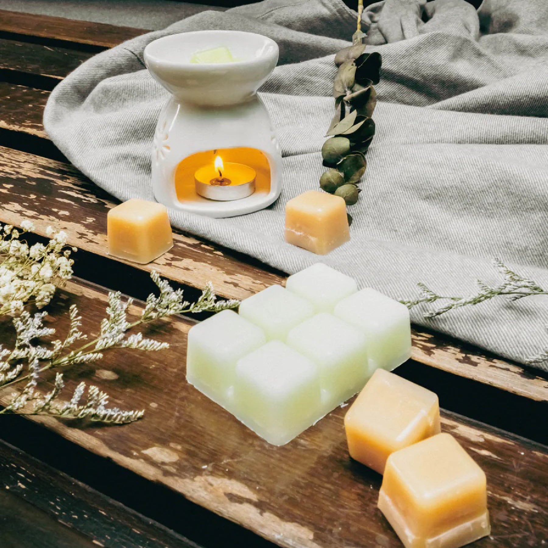• Melt wax cubes with any flameless candle warmers or wax burners