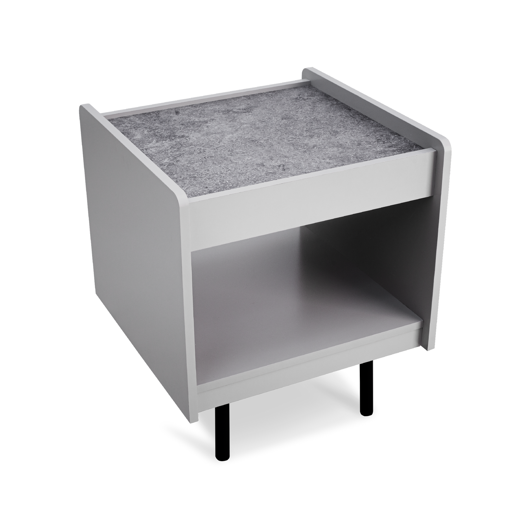 The Polo Side Table is a stylish and versatile accent piece for your living space, featuring a Light Grey Particle Board body with a Wood Touch Surface for easy maintenance and an elegant look. Supported by sleek Black Powder Coated Metal legs, it offers both stability and a modern contrast. Its open shelving design allows for convenient access to items, making it suitable for books, magazines, or decor, while the spacious top surface accommodates lamps and personal items. This well-crafted side table seamlessly combines durability, style, and functionality, making it a valuable addition to any room's decor.