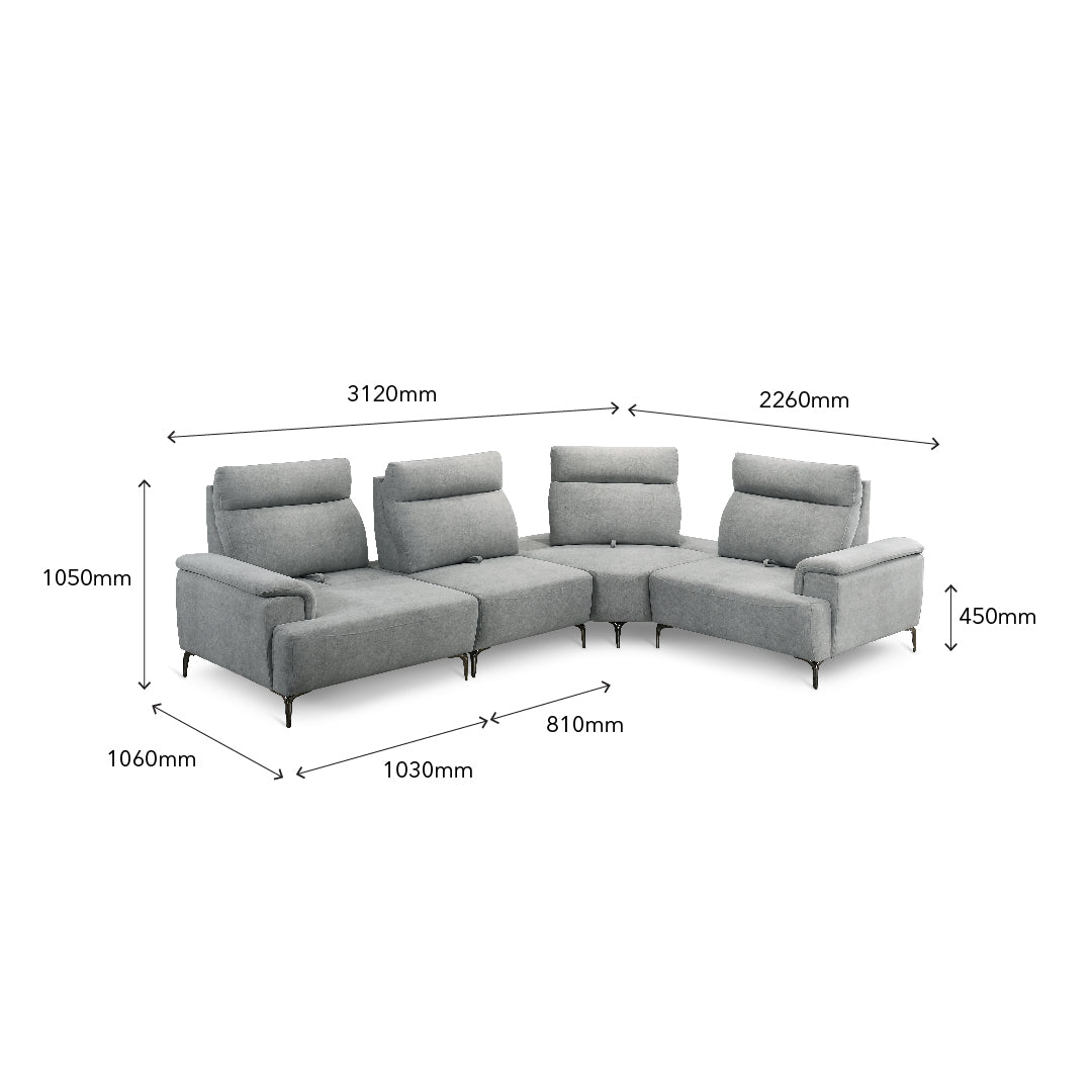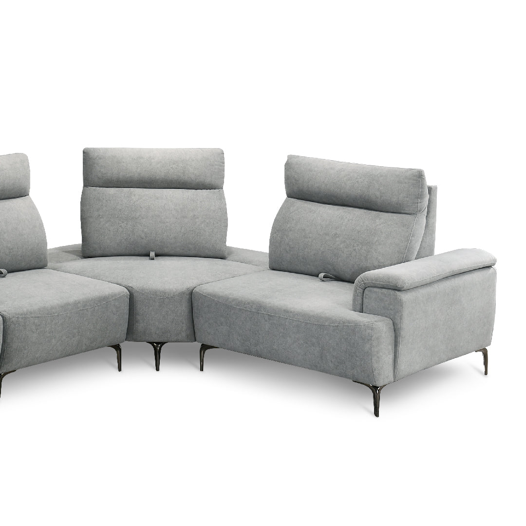 Goon Corner Modular Sofa – A versatile and modern sofa in moon grey, crafted with easy-clean fabric, durable zig-zag springs, and high-density foam for lasting comfort. Featuring a supportive high backrest, push-back function, and a movable armless seat for flexible arrangements, it’s designed to fit both style and function in any living space.