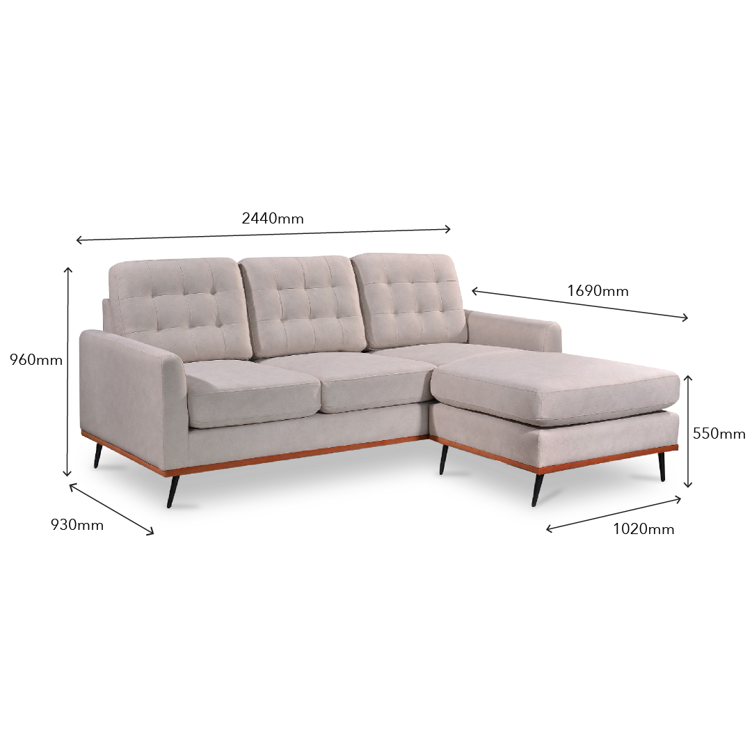 lIntroducing the Aquila L-Shape Sofa in Beige Grey: A subtle masterpiece of comfort and understated elegance. This sofa, crafted with quality materials including foam and open fiber, is supported by a durable Meranti Wood frame and sleek steel legs. Its soothing Beige Grey color enhances versatility, making it a versatile and chic addition to any room. Experience a perfect blend of style and comfort in your living space with the Aquila L-Shape Sofa.