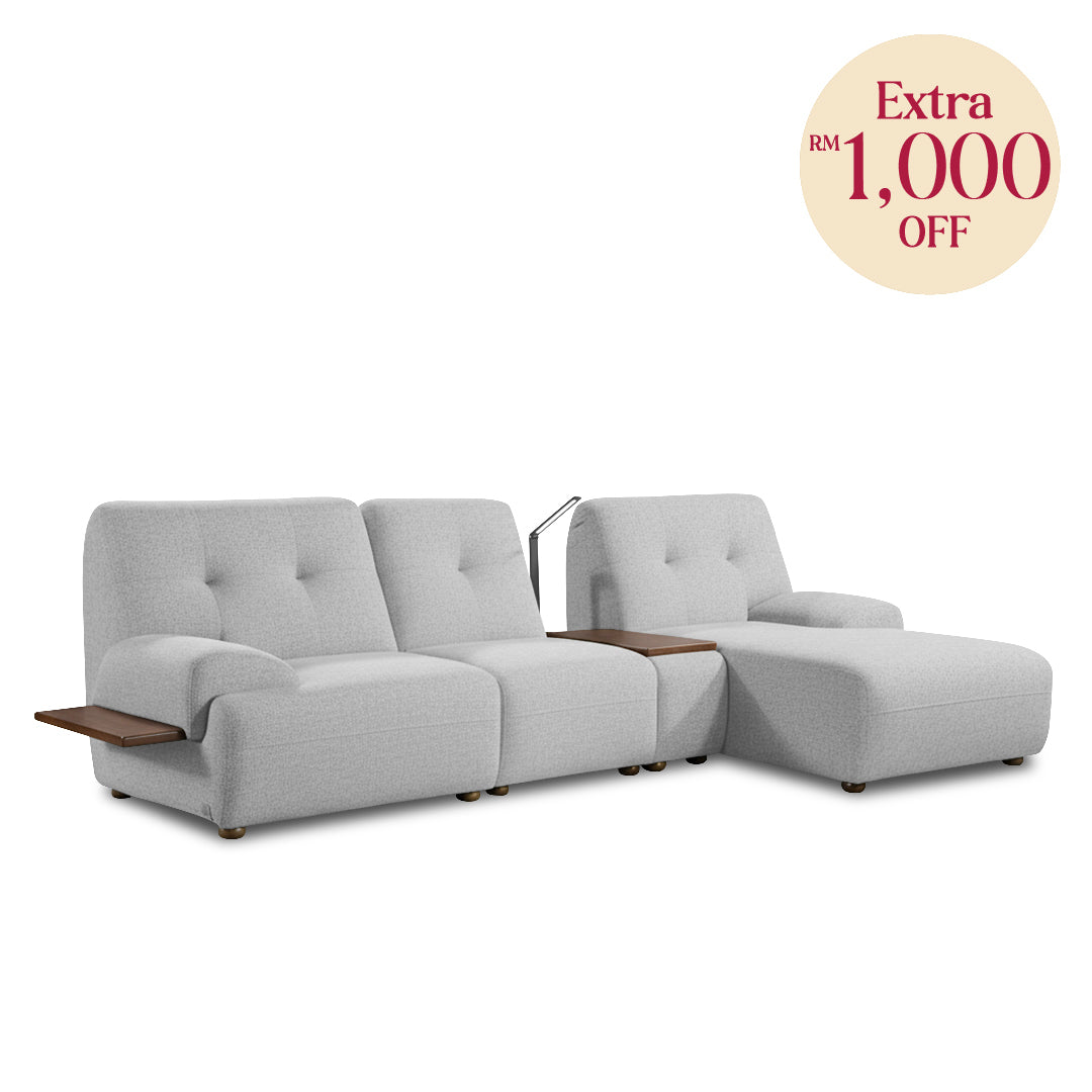COEY L Shape Sofa with Console Table Pastel Grey