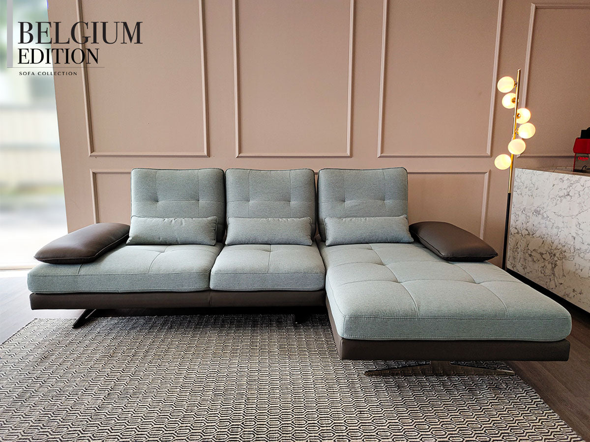 MEIR sofa features adjustable arms and backs that offers versatility which allows you to choose the best suited angle for optimum comfort. With its distinctive dual material combination of high quality Belgium fabric with genuine leather arms achieves a level of modern yet casual aesthetics.