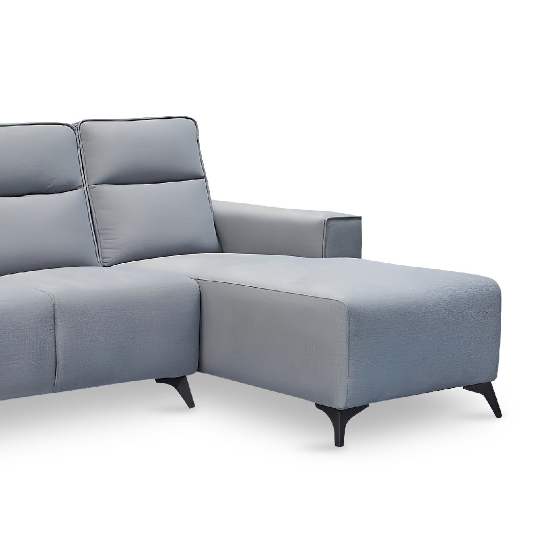 The Villano L-Shape Sofa offers comfort and durability with a Meranti wood frame, high-density foam seat, and support from zigzag and pocket springs. Its water-repellent fabric makes it easy to maintain, while powder-coated steel legs provide a sleek, sturdy look.
