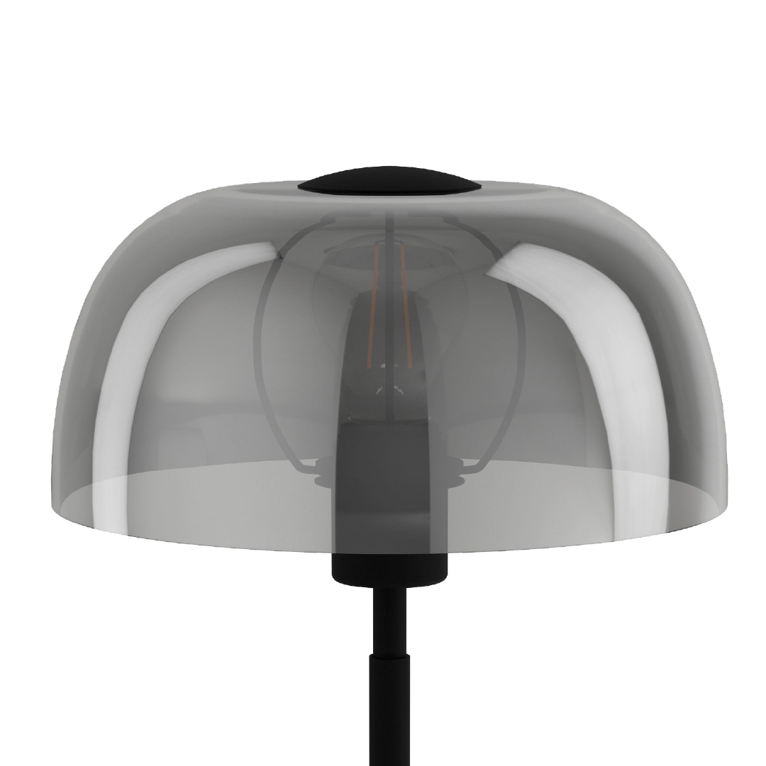 The Solo 2 Table Lamp is a modern lighting fixture with a sleek black steel base and a glass vaporized shade in black transparent. It features an in-line switch for easy operation and operates on mains voltage of 220-240V, 50/60Hz. The lamp includes an exclusive E27 illuminant and comes with a 2-year warranty, providing both style and reliability for any contemporary space.