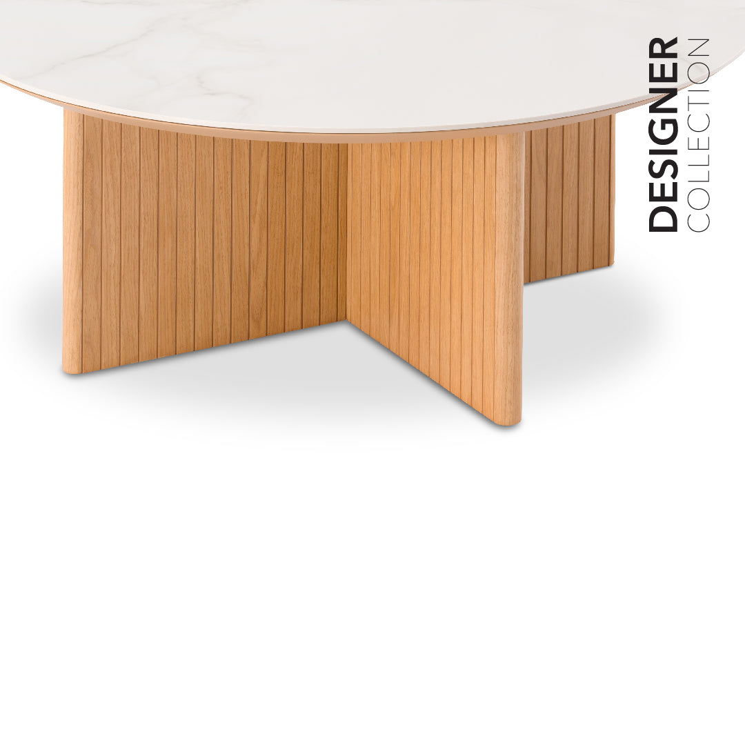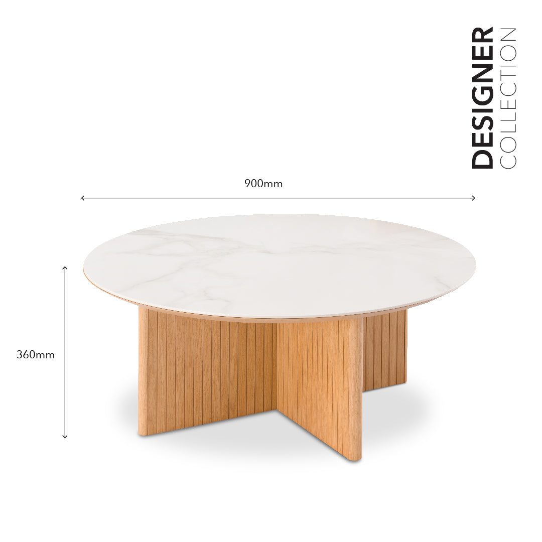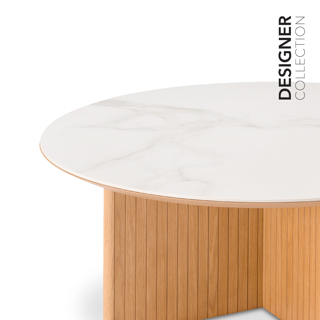 A beautifully balanced blend of natural warmth and modern elegance. The Mouvi Round Coffee Table features a smooth 6mm sintered stone top paired with a warm oak-finished medium-density fibreboard base. Its round silhouette and minimalist design make it a perfect centerpiece for any contemporary living space.