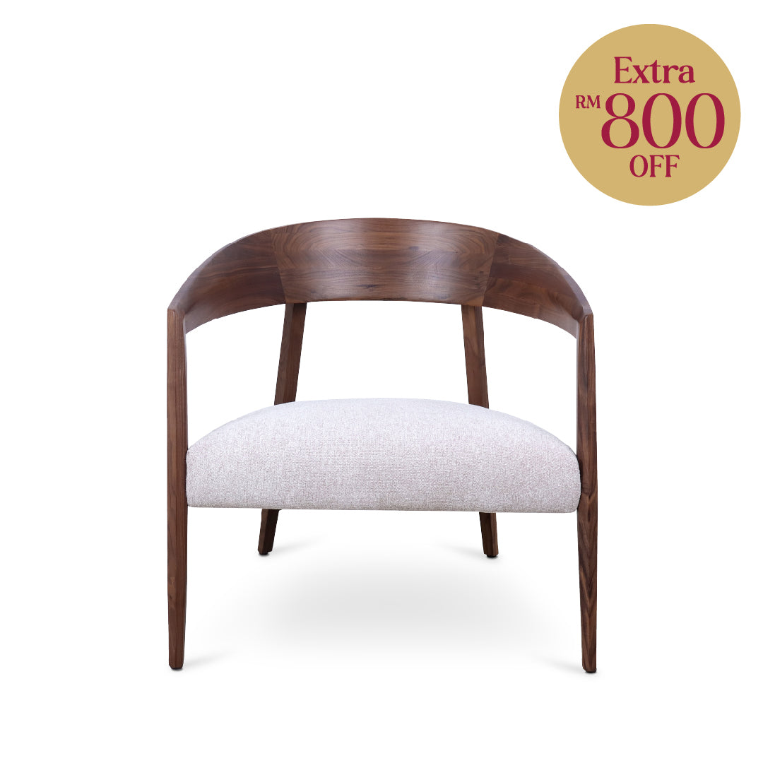 Wooly Arm Chair combines timeless elegance with everyday practicality. Built with a solid American walnut wood frame, it features a plush high-resilience foam seat upholstered in Fibre Guard fabric. With stain-resistant, easy-clean properties and free from harmful substances, it offers both style and peace of mind for modern living.