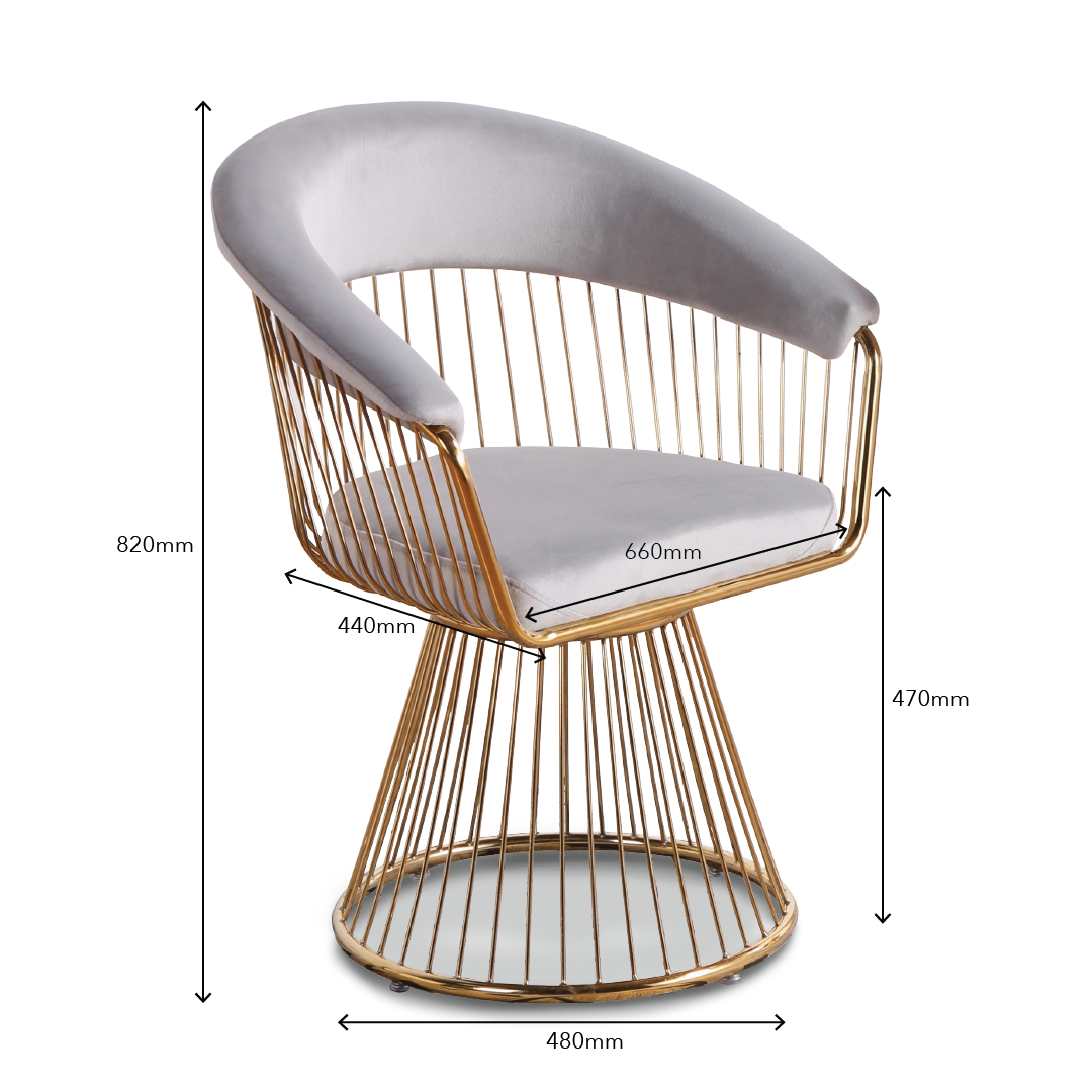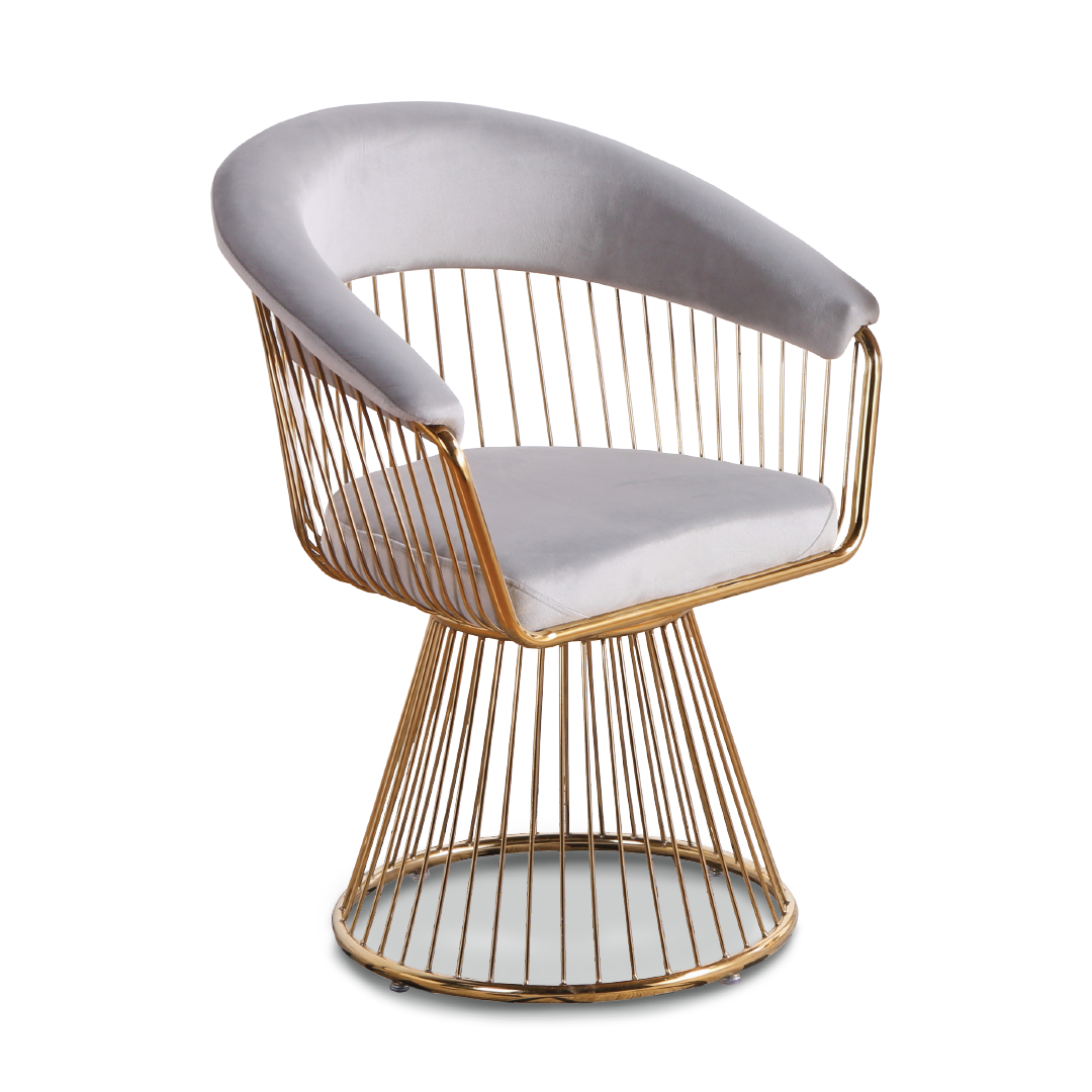 - Chair : Gold Chrome Steel + Grey Velvet Fabric