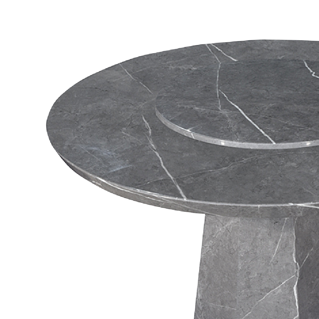 The Mercede Marble Dining Set is a sophisticated and versatile ensemble that includes a round table and six chairs. The table features a marble-laminated top and legs for an elegant appearance and durability. The chairs have PU fabric seats with foam padding and black powder-coated metal legs, creating a cohesive and contemporary look. This set seamlessly combines style and functionality, making it suitable for both formal dinners and casual gatherings, enhancing the overall dining experience in your home.