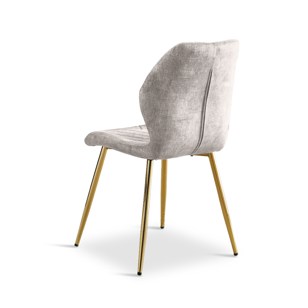 The ROSALIE Dining Set Light Grey presents a sophisticated addition to any dining area, featuring a rectangular table paired with six chairs for ample seating. Crafted with durability and style in mind, the table boasts a Sintered Stone top and Chrome Gold legs, while the chairs offer comfort with fabric-cushioned seats and Gold-coated metal legs. Making the Rosalie set perfect for both casual meals and formal gatherings, blending functionality with chic design effortlessly.