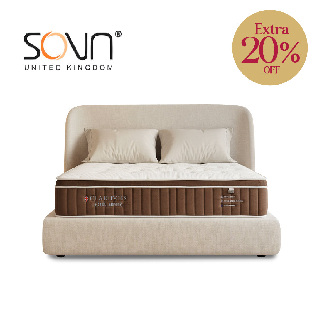 Experience hotel-grade comfort at home with the SOVN Claridges Hotel Series mattress. Crafted with premium materials like Belgium’s cashmere fabric, cool-feel fabric, and a Bio Latex Eurotop layer, it offers a plush yet supportive sleep. Featuring a 5-zone pocketed spring system with foam encasement and high-density foam, it ensures optimal support and pressure relief. Naturally hypoallergenic, anti-dustmite, and antibacterial, this mattress provides a clean and healthy sleep environment. Medium firmness (6/10) and available in Single, Super Single, Queen, and King sizes.
